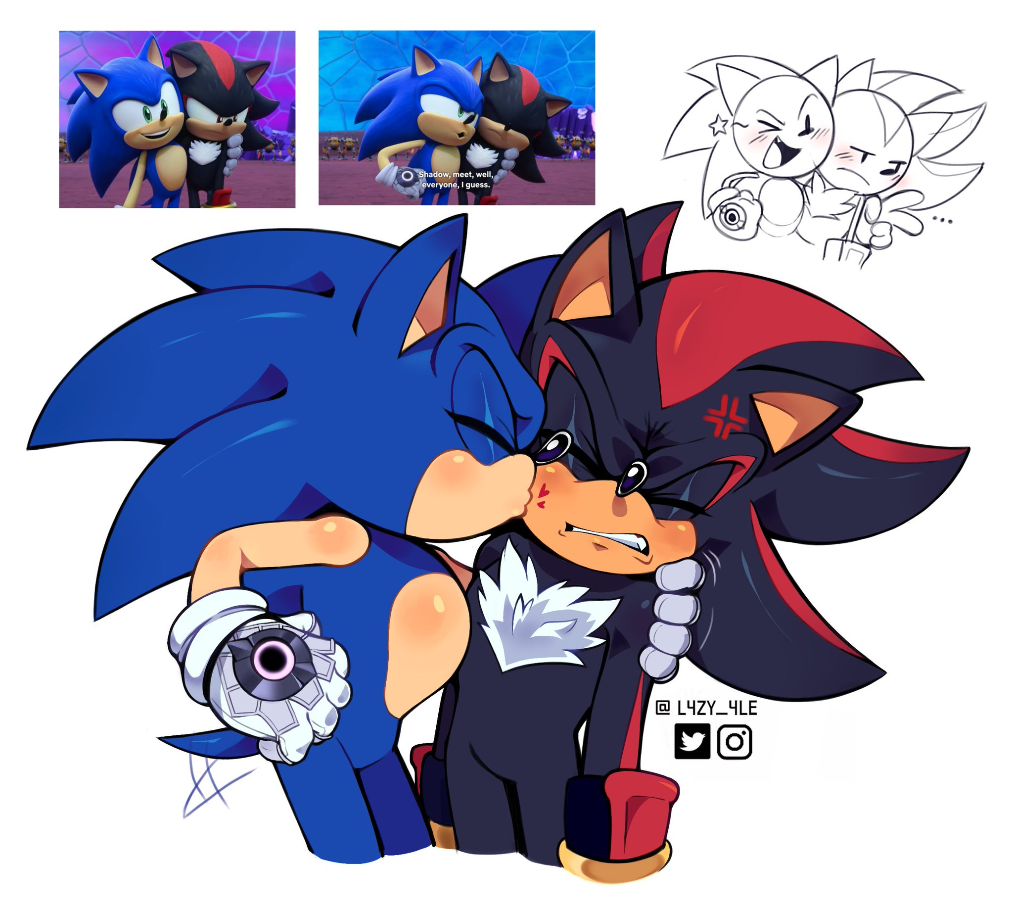 What do you think of my idea of how to make Sonadow happen?> be Sonic and Shadow> both having weird dreams about running through impossible cities under strange stars> turns out ancient civilization called Star-Readers made prophecy about two "runners" > prophecy activates when "heaven touches earth twice"> heaven touched earth when Shadow was created on ARK> heaven touched earth again during Starfall Islands incident> now we're apparently destiny boys> find magic crystals that pulse in sync with each other> crystals only work when we're together> start visiting seven ancient sites to figure out wtf the prophecy means> every site shows us a different way the Star-Readers screwed everything up> they tried to control the first pair of runners> imprisoned them, tried to make them identical, froze them in time> eventually forced them to merge into one being> first runners literally chose death over that> entire civilization collapsed from being control freaks> we visit all seven sites> Eggman keeps trying to steal our crystals for "ultimate power"> get to final site, the Starfall Circle> ancient tech tries to force us to merge> we say "no u"> realize the prophecy isn't a command, just an observation> it's not about merging, it's about choosing to work together> we're like binary stars - separate but orbiting each other> fulfill prophecy by literally just choosing to keep running together> no ultimate power, no cosmic transformation> just two hedgehogs who work well as a team> crystals go inert, prophecy complete> Eggman still mad> we still running together six months later> not because we have to> because we want to> tfw ancient cosmic prophecy just wanted you to have a friend> mfw chaos and order learned to get along