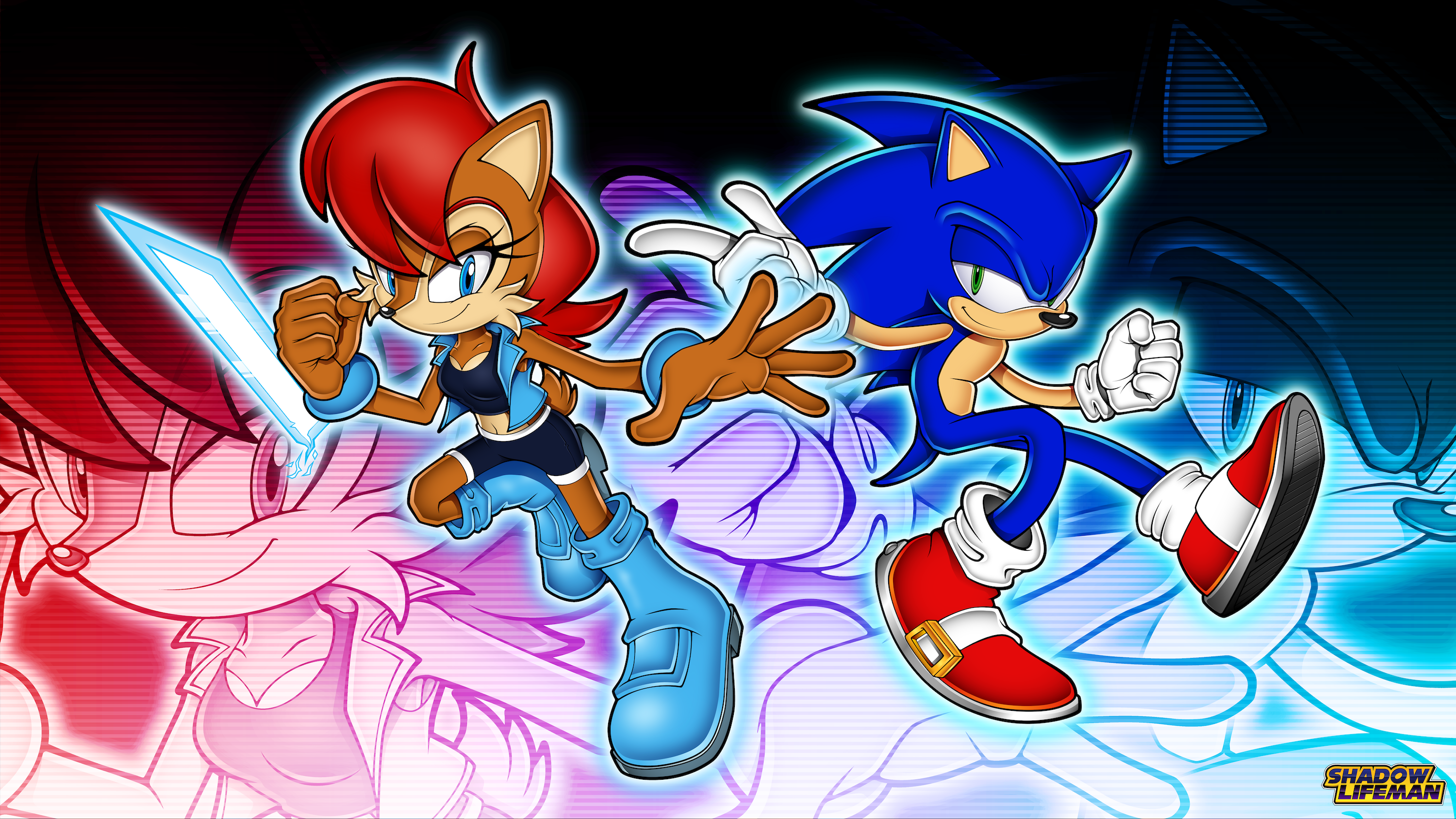 There is no scene in the movie where sonic and shadow run at the same time