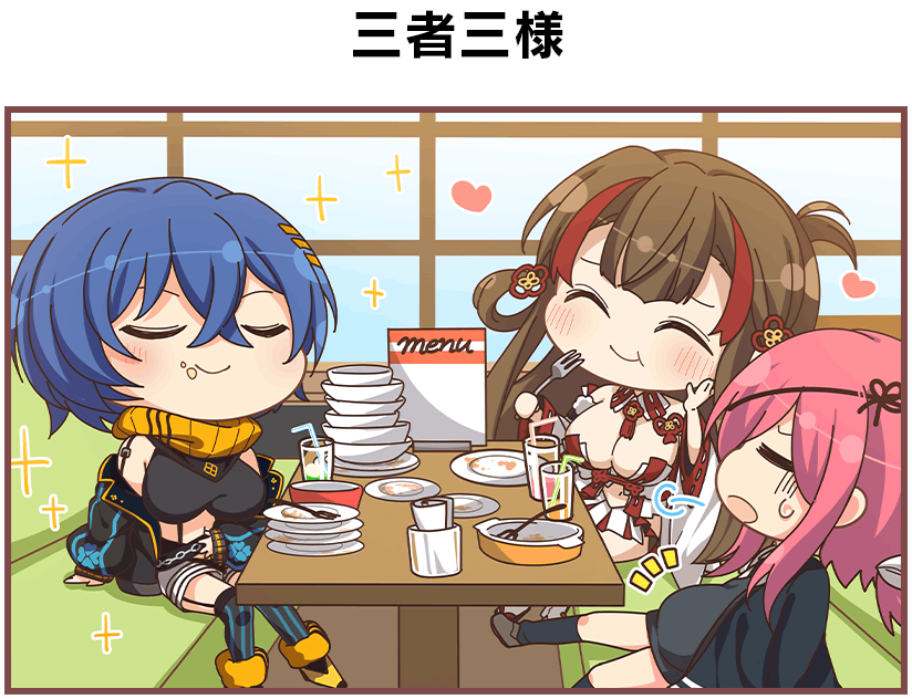 Homura crashing out at a steakhouse.