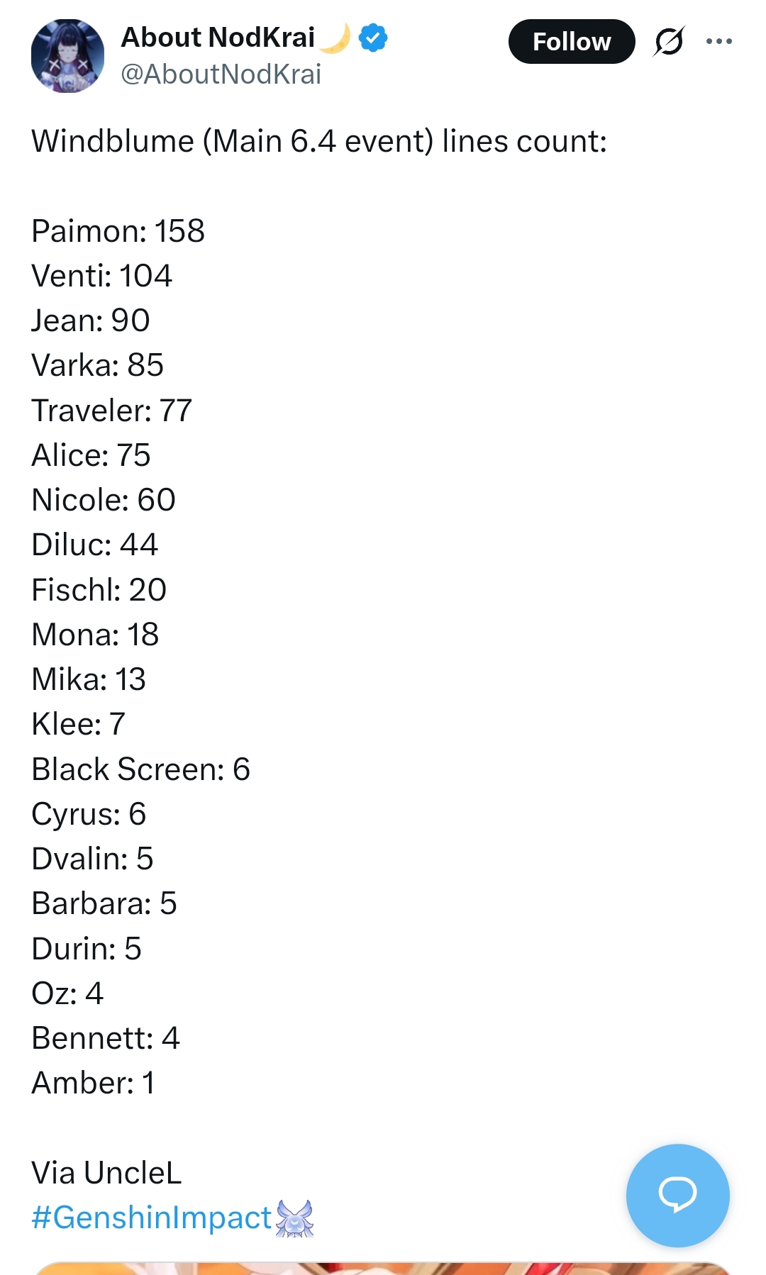 Previous: >>555403694 >Character Trailer - "Columbina: To Where She Flies"https://youtu.be/WsYsNoNjbaw (EN)https://youtu.be/9AVYsSZ1huA (JP) >Character Teaser - "Columbina: Where She Dwells"https://youtu.be/ME4OGvcPBUs (EN)https://youtu.be/7zLvIrPBGF4 (JP) >Version "Luna IV" "A Traveler on a Winter's Night" Trailerhttps://youtu.be/_yuHIzPJGHA (EN)https://youtu.be/wTL5hRtmWjM (JP) >Outfit Teaser: Teyvat Style – Nocturne of Serenityhttps://youtu.be/Q5I3xKJfIO4 (EN)https://youtu.be/TGsTYPeOtxw (JP) >Current character banner: Columbina, Ineffa, Ifa, Sethos, Fischl>Current weapon banner: Nocturne's Curtain Call (Catalyst), Fractured Halo (Polearm)https://www.hoyolab.com/article/43195155 >Daily check-in rewards (permanent)https://webstatic-sea.mihoyo.com/ys/event/signin-sea/index.html?act_id=e202102251931481&lang=en-us >Redeemable Codes with Primogems (all regions): https://genshin.mihoyo.com/en/giftGENSHINGIFT8X73KH58KDHNMoonInvitationLunaIV (NEW)P3GXX56W3VG9 >Useful Links (Wiki, Simulators, Maps, Character Builds, /gig/ friendlist, Third-Party Tools, etc.)https://rentry.org/giglinks /gig/ OP pastebin (use this if making new thread):https://pastebin.com/ca0zseQ9