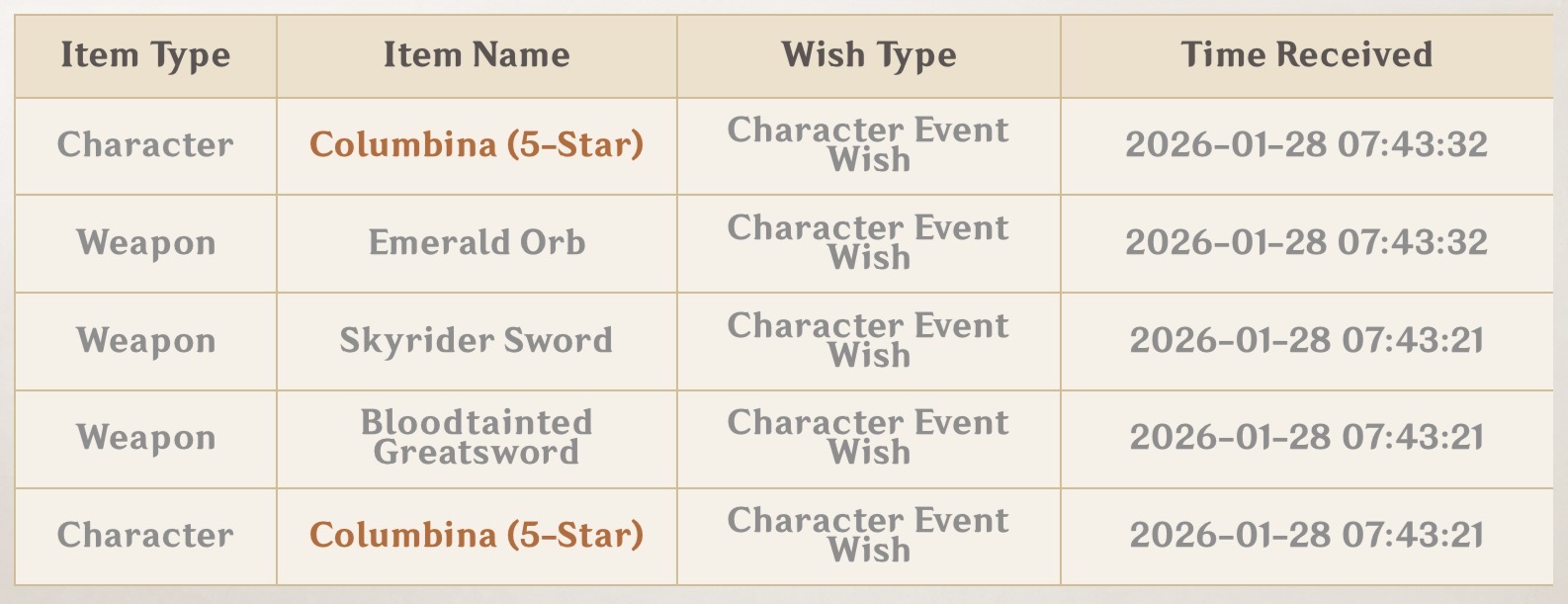>Current character banner: Columbina, Ineffa, Ifa, Sethos, Fischl