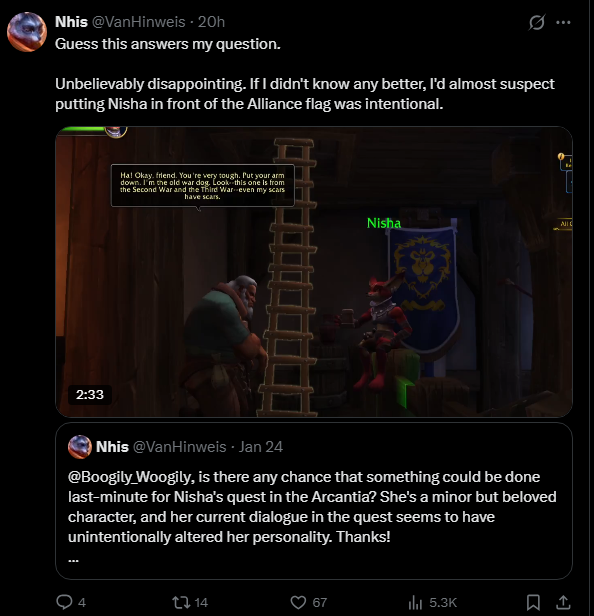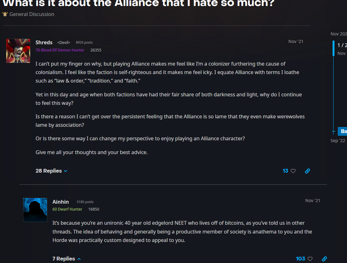 >>555474305The biggest problem with Xal'atath is that they decided to keep dragging her on for 3 expansions. Hate or love Fyrakk, but when the focus was on him he was sieging the world tree in the next patch already.