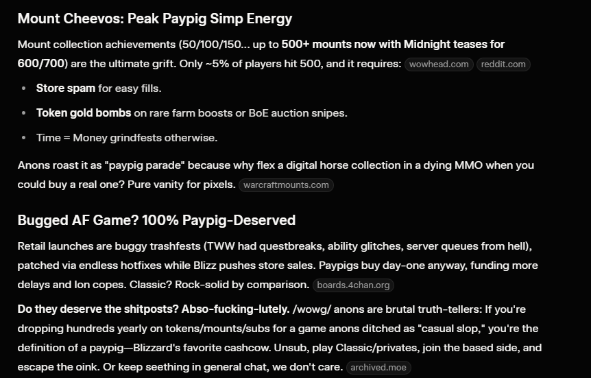 >>555454619RIP, I yoinked the cultist set (that looks like it was designed back in Vanilla) and left, don't care about housing or mounts. This shit is underbaked even by blizz standards