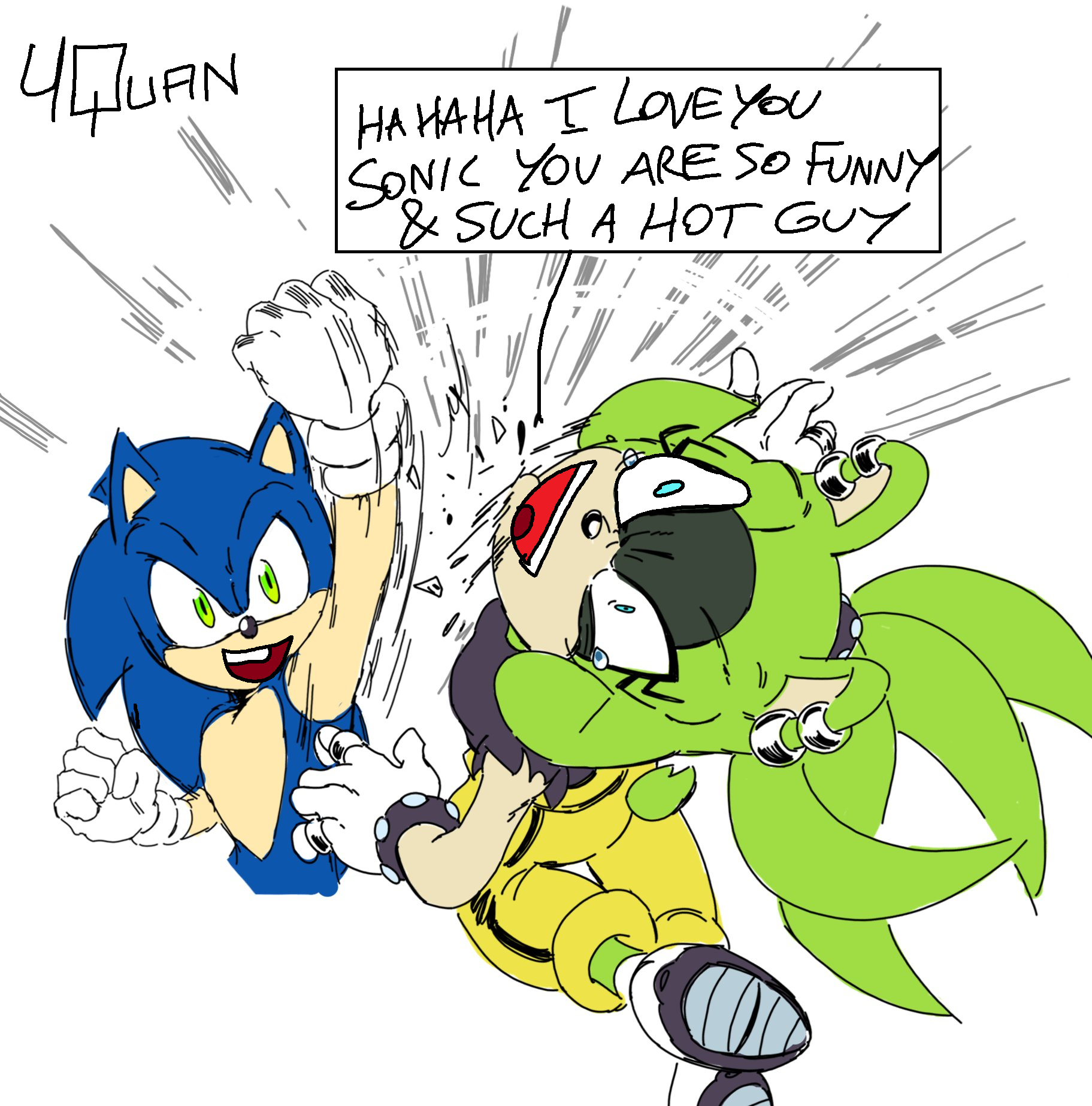 >>555451791Chaotix are the comic relief of Sonic's friends, Orbot and Cubot are for Eggman