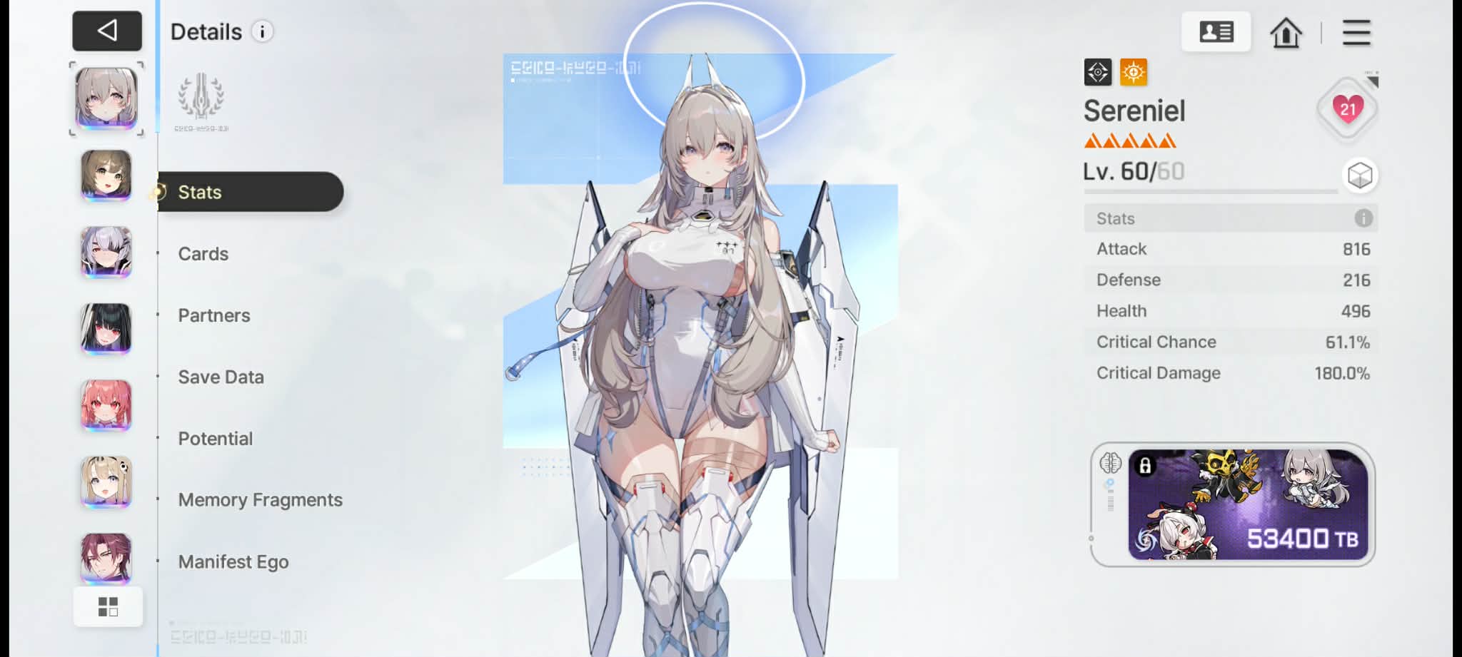 finally reached 60% crit rate on sereniel... will work on getting more crit damage now.