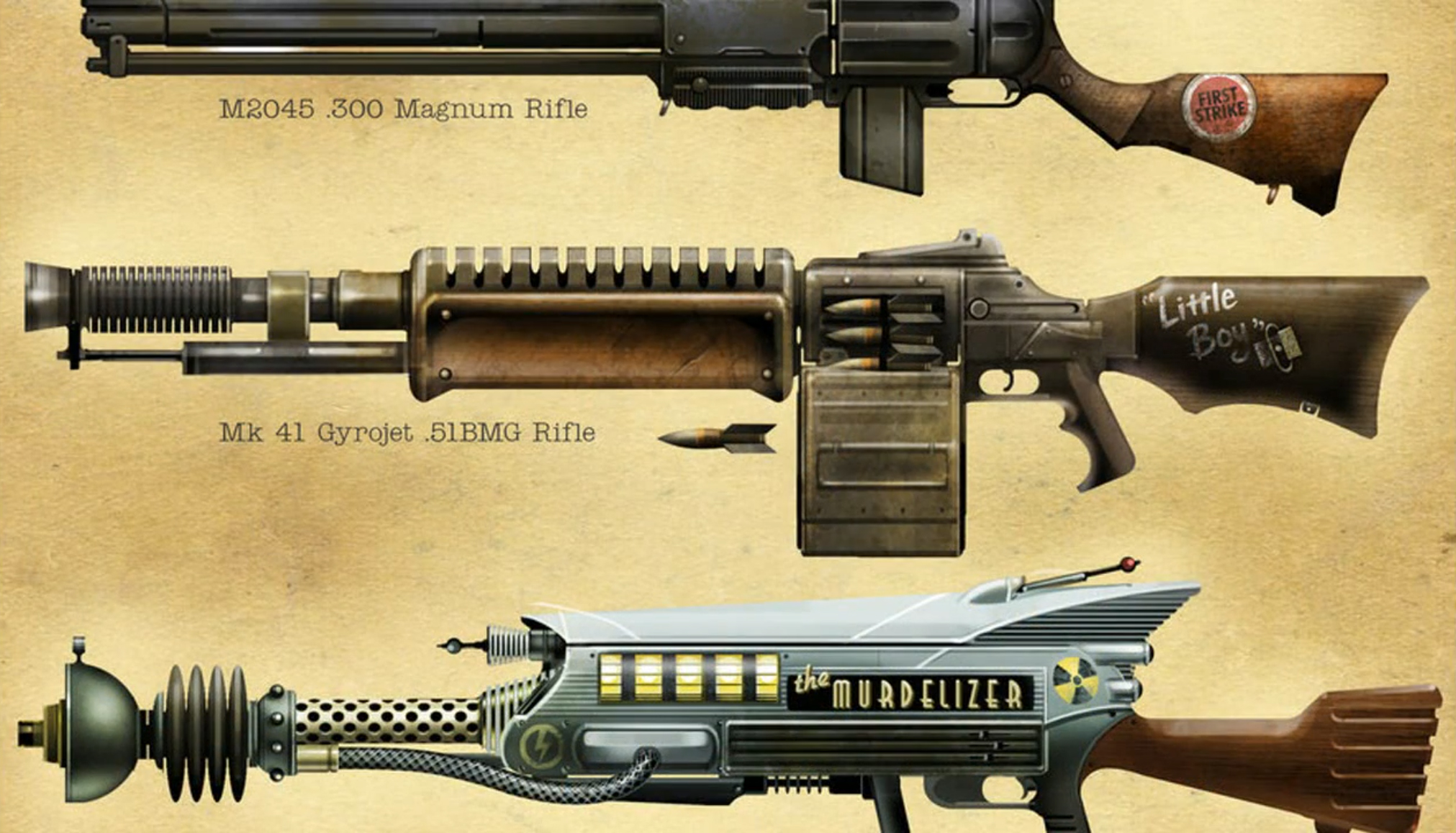 >>555467598Yes. Mostly talking fallout 1/2, but if you add on tactics you get a ton of irl manufacturers (Beretta, Colt, Casull, Browning, Calico, Walther, etc etc H&K -> 10mm smg, p90c, l30 gatling laser, g11, cawsWinchester -> combat shotgun, plasma caster, double-barrelGlock -> plasma defenderRockwell -> bazooka, minigunRheinmetall -> vindicatorSig-Sauer -> 14mm pistol, p220FN Herstal -> fn falMauser -> broomhandlethere's more but idc