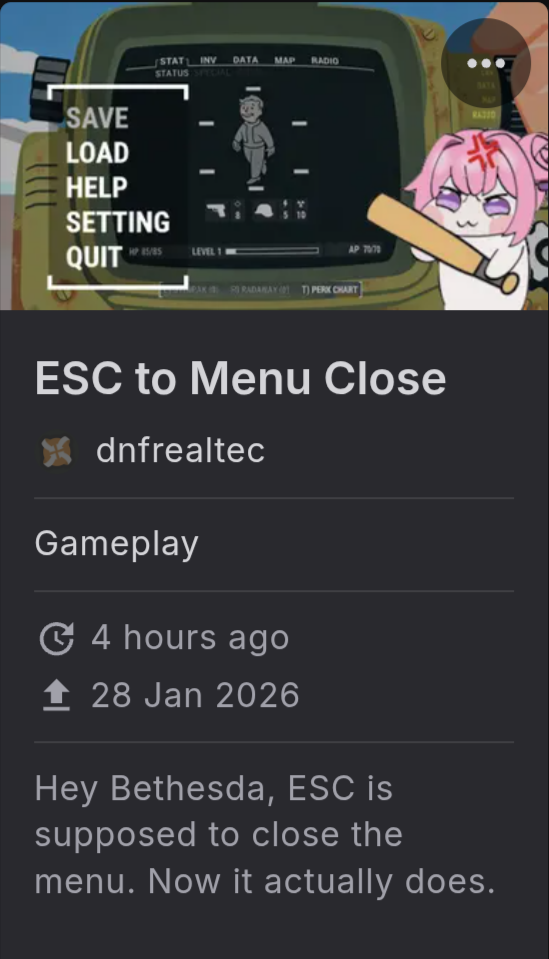 >>555471523https://www.nexusmods.com/fallout4/mods/17941