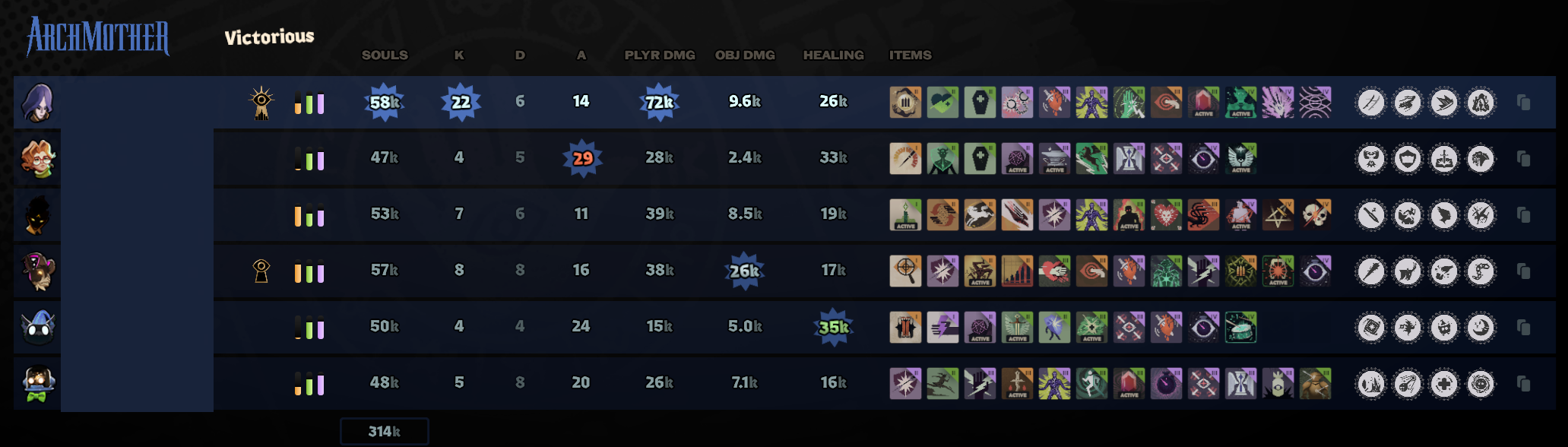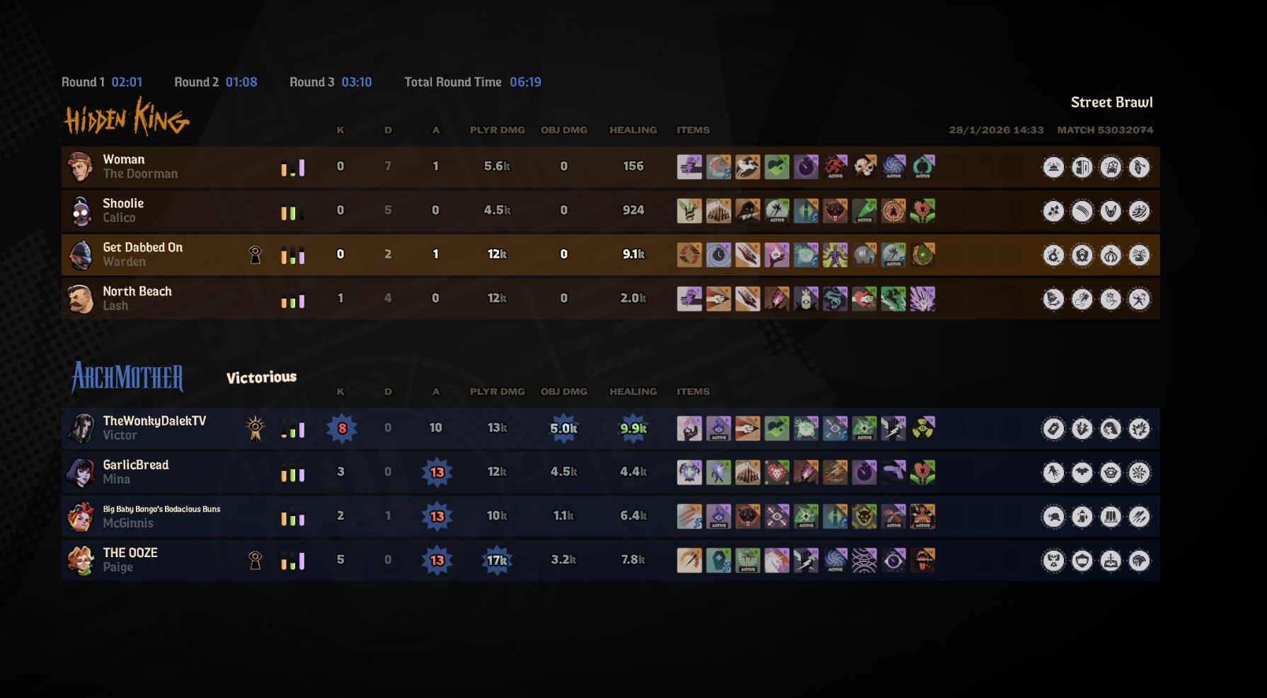 >Lose winnable game because Mina dies 18 fucking times with only 3 kills under her belt>Shiv, Vindicta, and me playing Gun Doorman have only been the ones doing the most>Lady Geist and Paradox just exist and racking up assistsI'm blaming Mina for snowballing Bebop and Abrams.