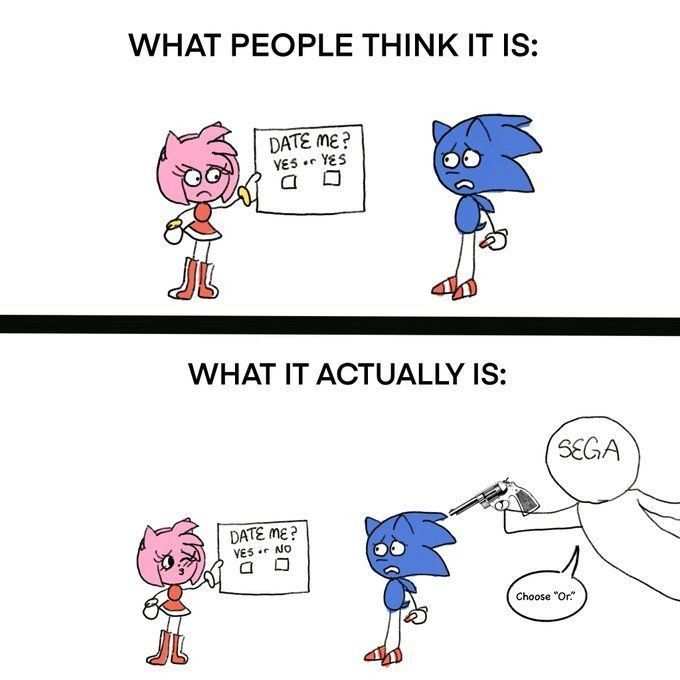 Now that i think about it, didn't frontiers revealed sonic actually loves amy? He even regreted not making his mind sooner.