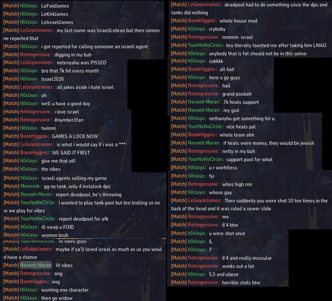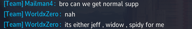 >>555576853That’s pretty much what every match I’ve seen looks like.>First round is normal, both people play whatever characters>Whoever loses switches to a high mobility low ttk character like BP or Spider-Man and alternates between hiding like a bitch and poking at the enemy>Other guy switches to a tank, usually Angela or Thor, or Bucky>Whoever loses switches to DD and winsThey should just remove the ability to swap characters mid match because they’re all the same. This shit reminds me of practice doom match lobbies where everyone would have their own gay vendettas against each other.