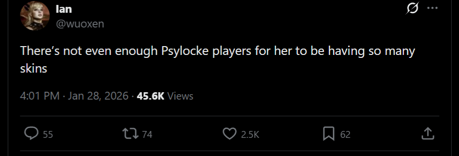 >Psylocke out of all people has the best skin selection in the gamehow did this happen