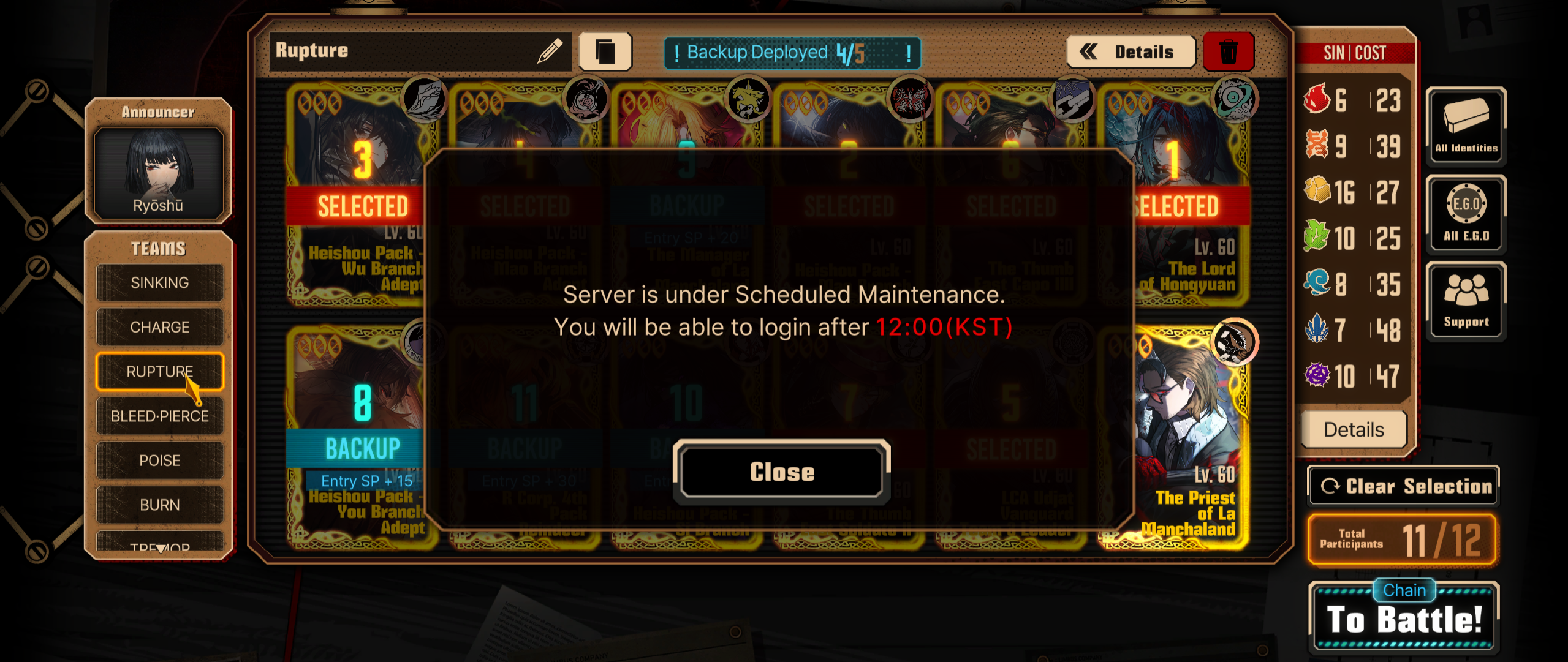 Previous thread: >>555474239MeurtisGOD editionSeason 7 - Kumo no Ito2025.12.31 —Mirror Dungeon #6 - Mirror of Immortality2025.07.03 —Refraction Railway Line 5 - Merry Go Round2025.02.20 —>Current Events>Upcoming Extractions>Current Extractions2026.01.22 — 2026.02.05[000] The House of Spiders: The Middle Apprentice Ishmael2026.01.22 — 2026.02.05Target Extraction: [ Rodion ] ID & E.G.O>FAQs! This game is directly tied to the setting of Project Moon's previous games, Lobotomy Corporation and Library of Ruina, and is set after both. Expect spoilers for those games in this thread.! The tutorial is important.>Download linksAppStore: https://apps.apple.com/app/limbus-company/id6444112366Google Play: https://play.google.com/store/apps/details?id=com.ProjectMoon.LimbusCompanySteam: https://store.steampowered.com/app/1973530/Limbus_Company/>Other linksOfficial twitter: https://twitter.com/limbuscompany_bOfficial youtube: https://www.youtube.com/@ProjectMoonOfficialOfficial site: https://limbuscompany.global>Required readinghttps://mega.nz/folder/xosDkZ5Z#Wt4JpUt5Bb2XG77pxuuXpw>For all your EGO and Sinner info needshttps://limbus.kusoge.xyz/https://gll-fun.com/en/>Useful resources and a general guidehttps://rentry.org/lcg_resourceshttps://rentry.org/lcbguidehttps://rentry.org/LCB_optimal_grind_guidehttps://lcb-days-since-last-id.carrd.co/https://lcb-days-since-last-ego.carrd.co/>Countdownhttps://lcbcountdown.carrd.co/