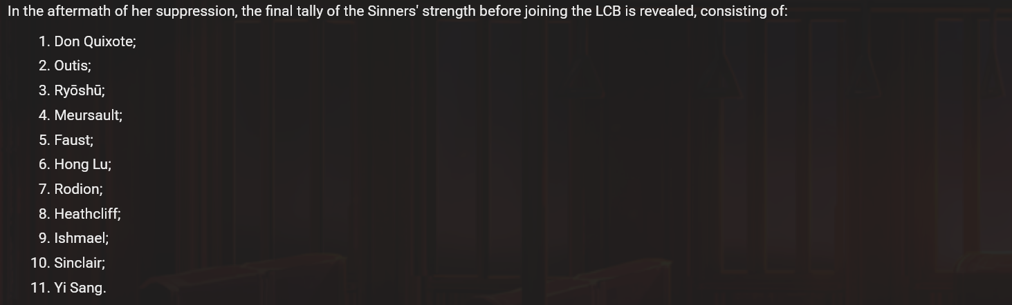>>555527141Just because they're weak doesn't mean they're not valuable in their own way>Yi Sang: May be the weakest sinner, but he's also the smartest and invented mirror technology.>Sinclair: May be the 2nd weakest sinner, but he has the mark and the potential to be the strongest>Ishmael: May be the 3rd weakest sinner, but she Dante's 2nd in command and leads the sinners in battle>Heathcliff: He uhh... well... he does.... he's moral support?See? They're all useful.