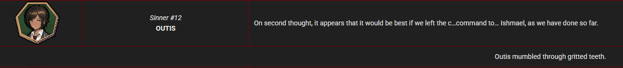 >>555527807Nope, Outis says herself that Ishmael is the commander.