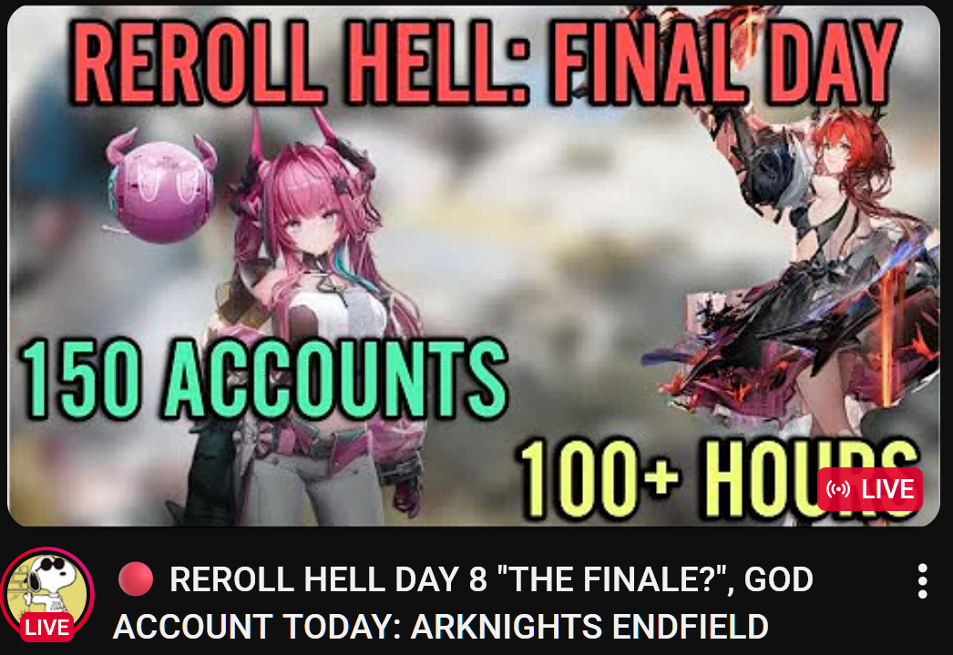Mtashed is calling Endfield the worst gacha because he lost the weapon banner coinflip 7 times.Yes, you read that right.He got 8 (EIGHT) 6* weapons in 80 pulls, including the featured weapon, and this is a bad thing somehow.Clearly Wuwa's system where the same 80 pulls only gets you the featured weapon and nothing else is better.Not to mention the difference between spending Arsenal Tickets and spending Astrites.