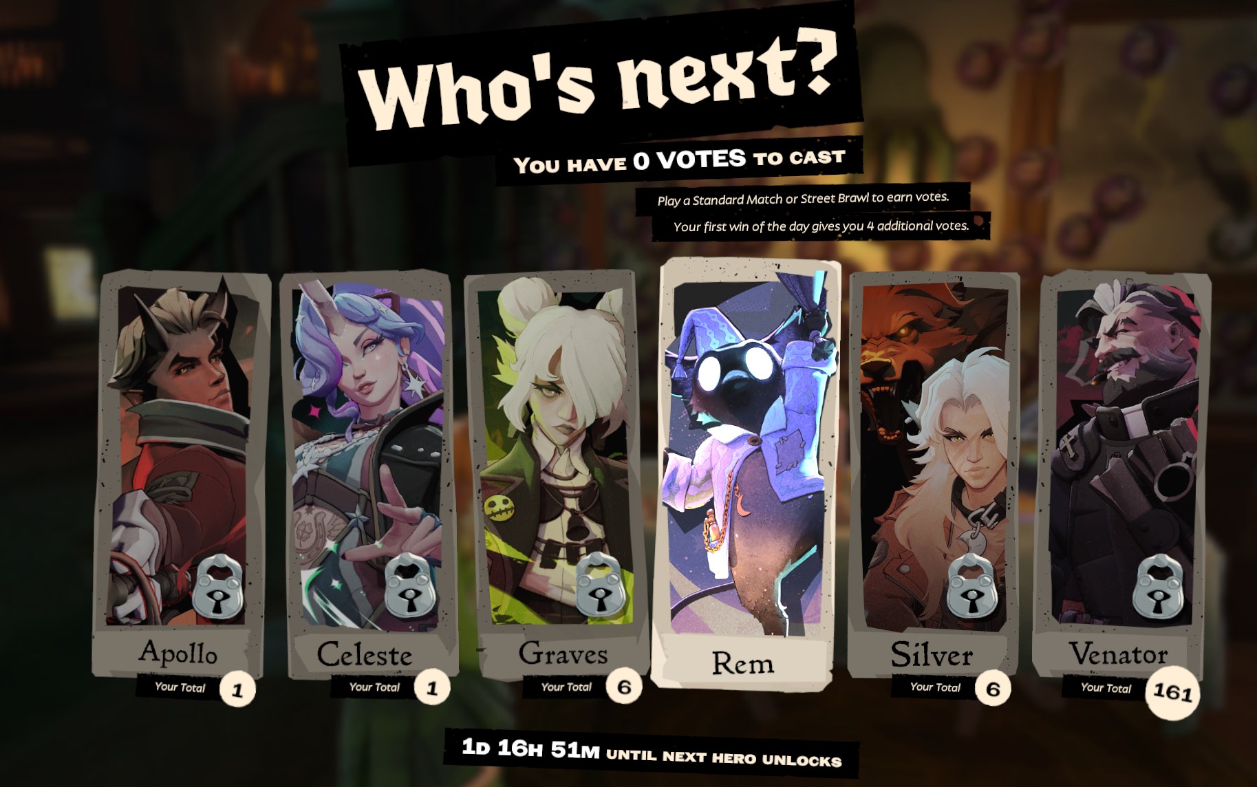 How I'll be looking at the rest of the character votes once Venator is in