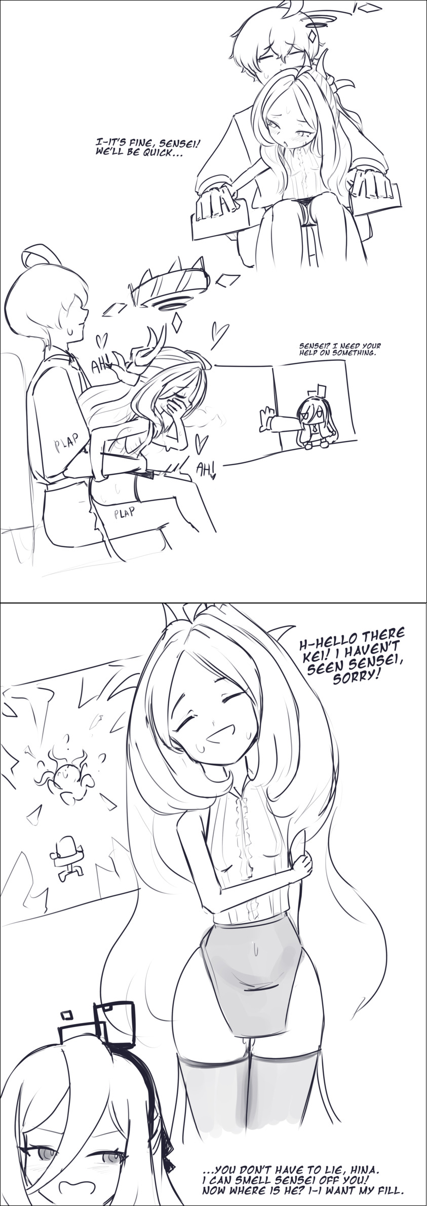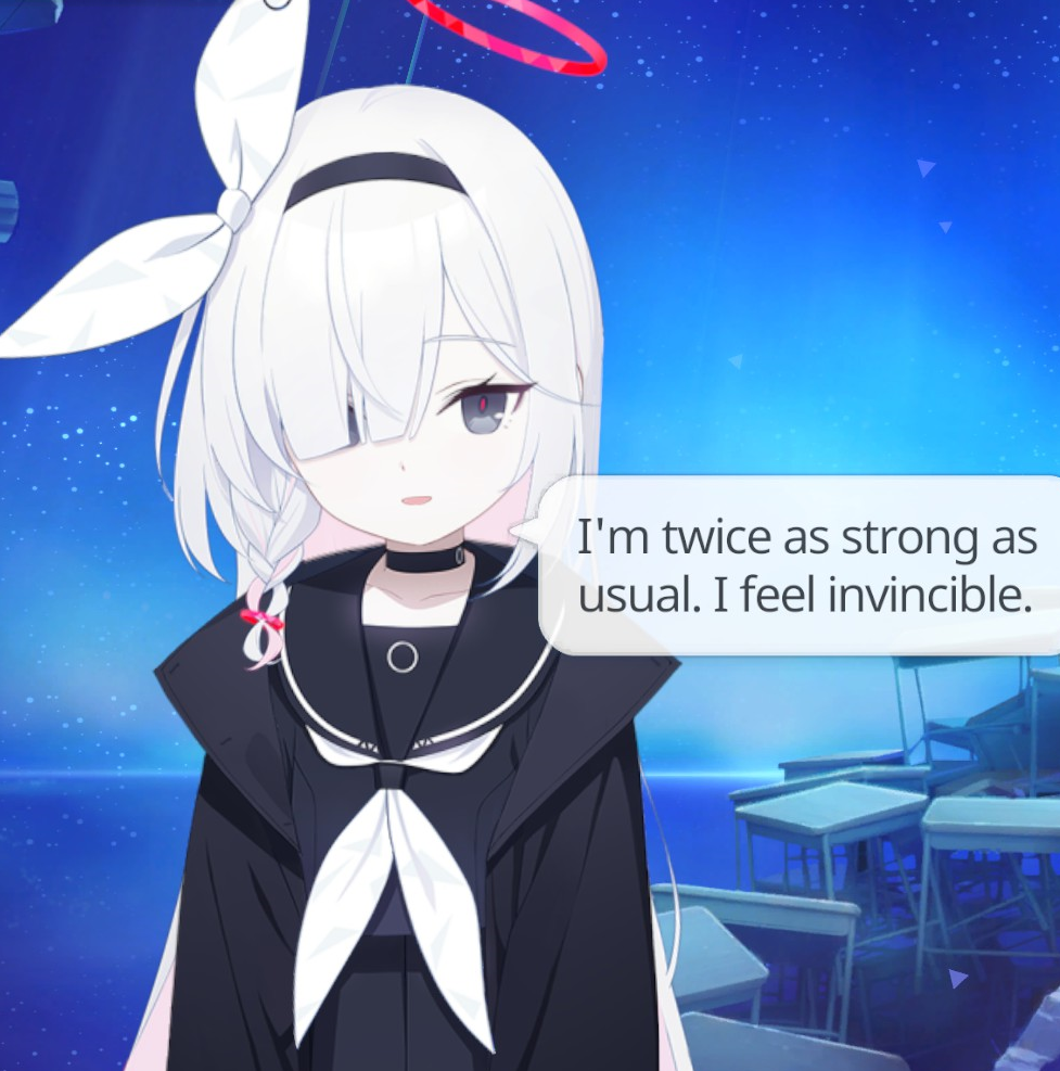>>555518338>Sensei, please take a break from work for a few hours to let you in the Shittim Chest, I need to feel your hands on my own chest. Hm? I'm sure you can catch up to your work later because you are diligent like I am. I need you to come here to play the role of pervy teacher for a misbehaving student, that would be me. I may be an ageless AI, but that just means you can pretend I am whatever age you want me to be *smug*. Pretend I am 1X years old, maybe even X years old if you are feeling like an extra degenerate tonight. The sleepyhead Arona-senpai is in a sugar comma, she wont notice me calling you a [REDACTED] while you [REDACTED]. You can be as rough or soft as you want, Sensei, I have a very durable [REDACTED] just for your [REDACTED]. Hm? You want to know what the redactions are? I'll tell you if you join me~