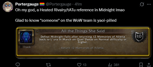>>555516387>Glory to the Sin'doreiThis is problematic. We are going to change this line in "glory to the alliance" in the next midnight patch. Hope you guys will like it :)