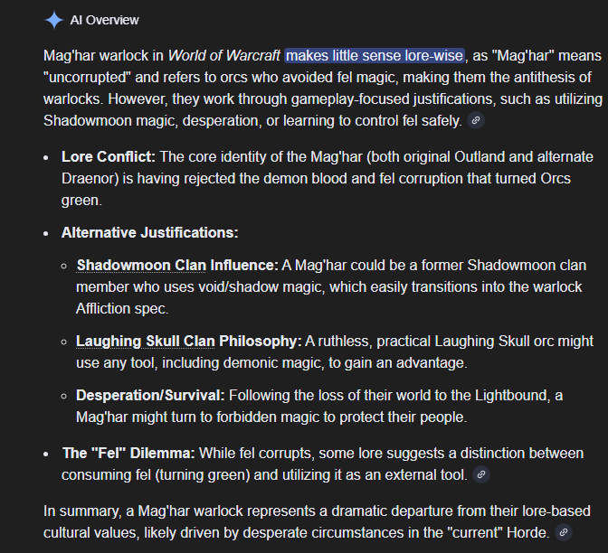 >>555516970AU maghar lore is weird to me. On paper they're supposed to be more technical and with advanced technology compared to the rest of the Horde, but they instead have a very...savage/barbarian thematic, even moreso than green orcs. Their heritage armor is a great example of that.