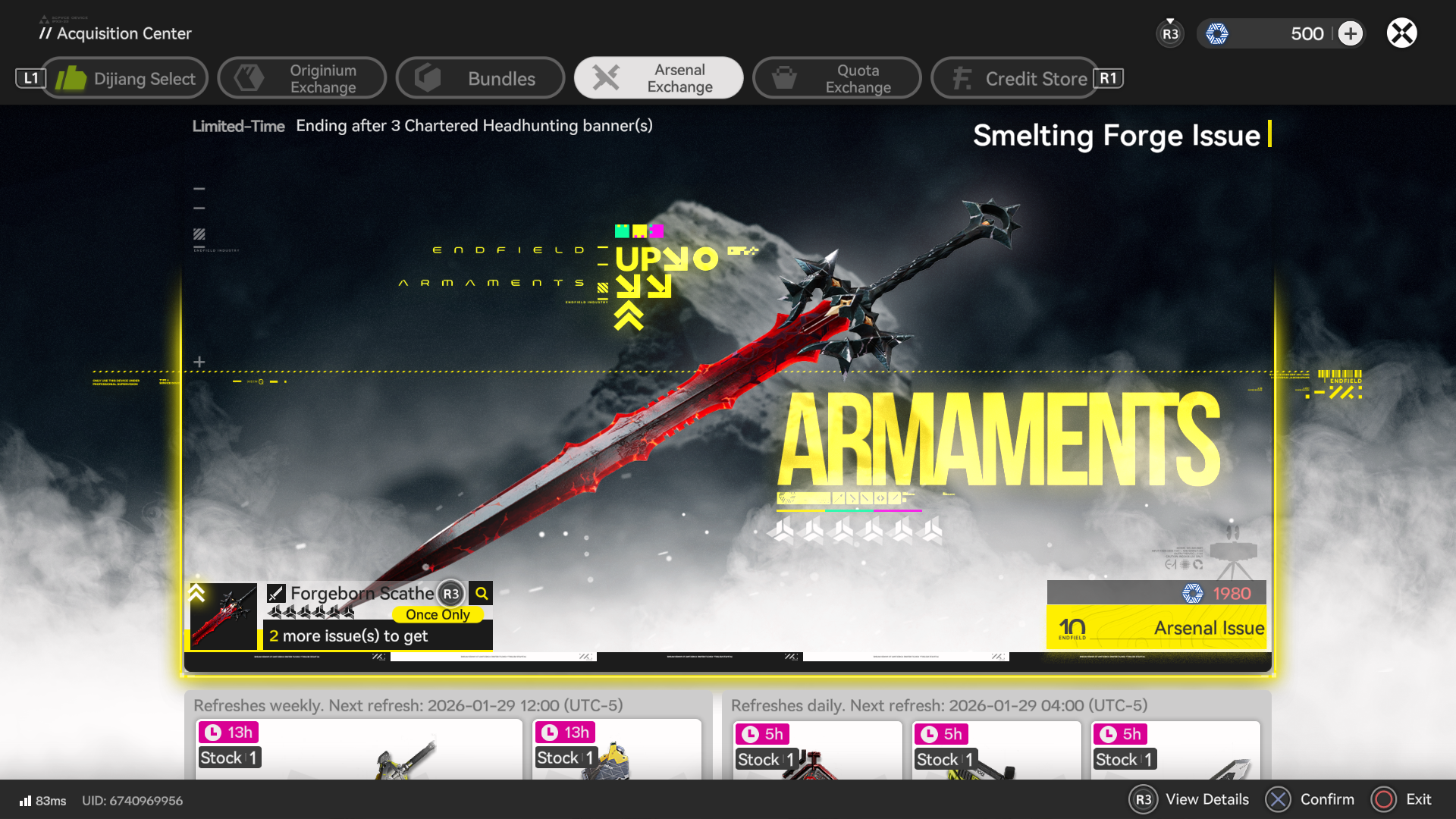 Previous thread: >>555522269>Official Websitehttps://endfield.gryphline.com/en-us>Official EN X (NEWS HERE)https://x.com/AKEndfield>Chartered Headhunting ScheduleJanuary 21st to February 7th --- "Scars of the Forge", (Laevatain)February 7th to February 24th --- "The Floaty Messenger", (Gilberta)February 24th to March 13th --- "Hues of Passion", (Yvonne)>Launch Reward Codes (Valid until January 29th)RETURNOFALLALLFIELDENDFIELDGIFTENDFIELD4PC>Twitch Dropshttps://endfield.gryphline.com/special/third-party-binding?channel=twitch>Voyage to the Stars (Ongoing until March 4th)https://endfield.gryphline.com/activity/voyage-to-the-stars/en-us/>Special Launch Streamhttps://www.youtube.com/watch?v=dz2g_D52NR0 [Embed]>Official Release Trailerhttps://www.youtube.com/watch?v=oJ00ggFb8A0 [Embed]>Official Release PV'shttps://www.youtube.com/watch?v=5Xm45NwWOlo [Embed]https://www.youtube.com/watch?v=UPpeeft1-8o [Embed]https://www.youtube.com/watch?v=tN80M6IEMo0 [Embed]>Wikishttps://wiki.skport.com/endfield (Official)https://perlica.moehttps://warfarin.wiki/enhttps://endfield.wiki.gg/>Blueprint Guideshttps://talospioneers.com/en>Stickershttps://drive.google.com/drive/folders/13KH3L6QPIKkVH7pBddv4uxwmwJsnOtklhttps://drive.google.com/drive/folders/1OuVtjv1k-9c3M6n7d4PX3CGG5bkwH04ahttps://drive.google.com/drive/folders/1AStB8bzFk3lSwMwczWPkFYCBrZe0vHOghttps://drive.google.com/drive/folders/1yS0lqUhxf8tBRtpDFfCU1y16IS2sSeF7>Fr/end/sSubmit your info, /end/min:https://forms.gle/Fo7BhZMKaKqiWyL19View other /end/mins:https://docs.google.com/spreadsheets/d/1YtxiDss0hgEQhLlZgpfzyGrJrzUcqDzOS9T6IH-BiVc/edit?usp=sharing