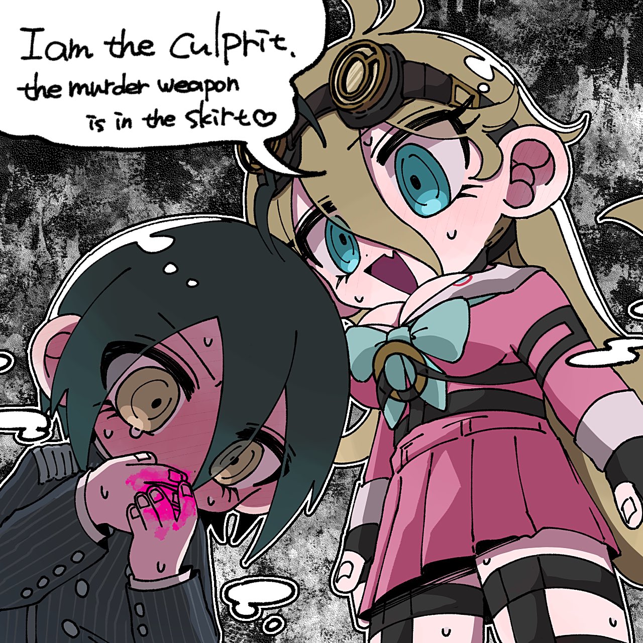 Kokichi stole Gonta’s takis. He sucked all the coating of the takis… every single one…Gonta no longer has a snack.