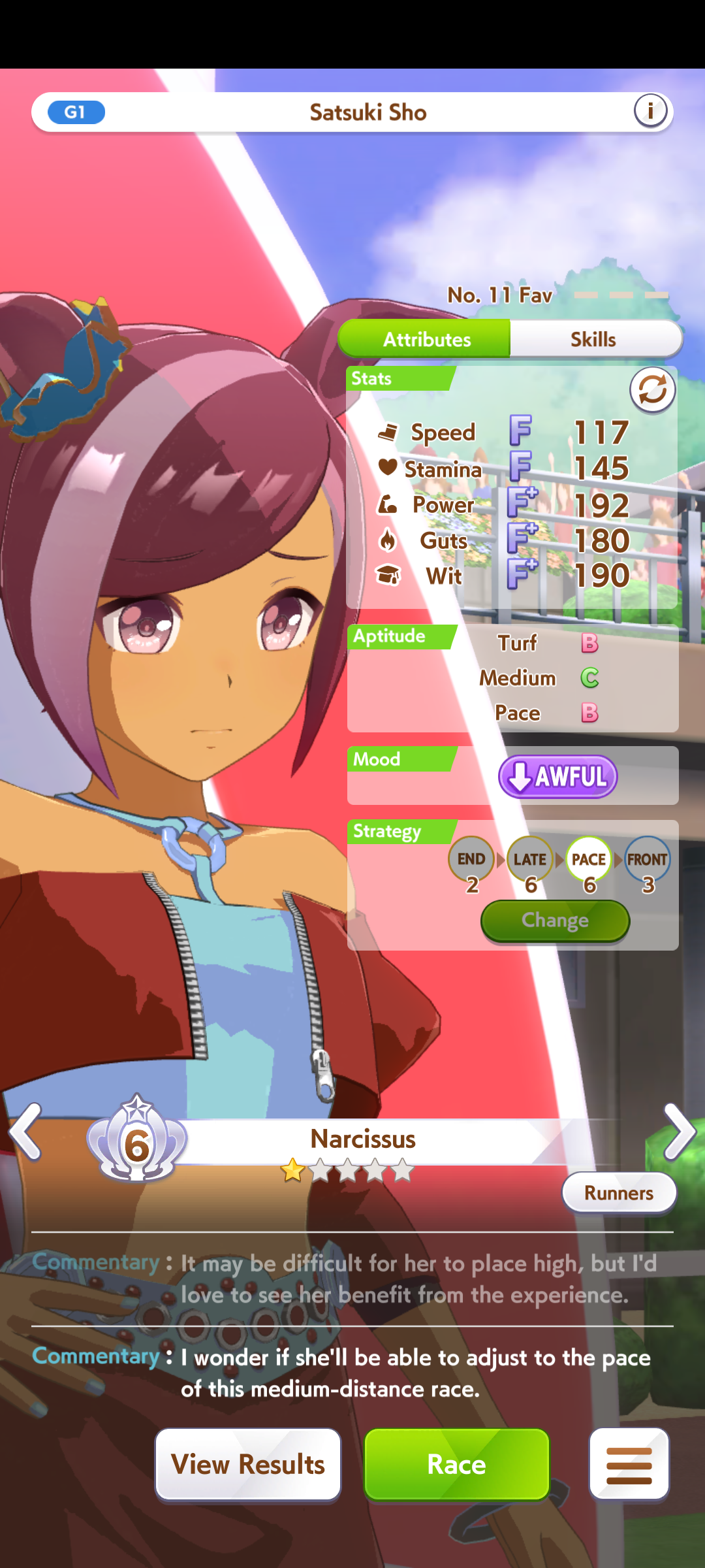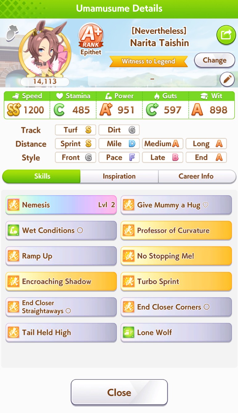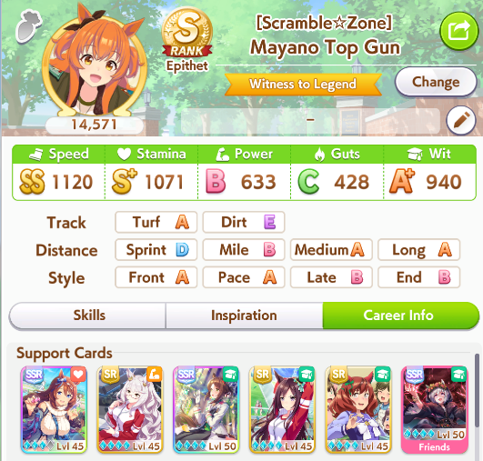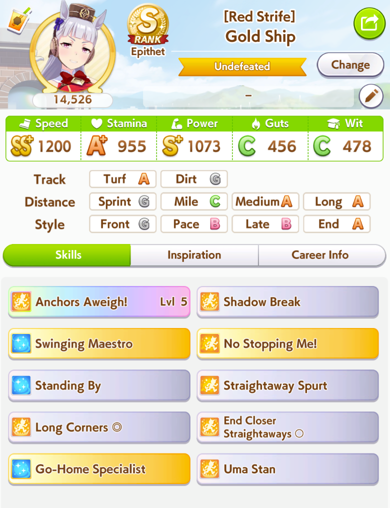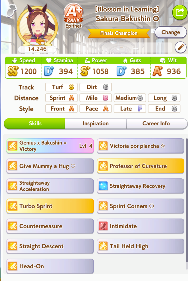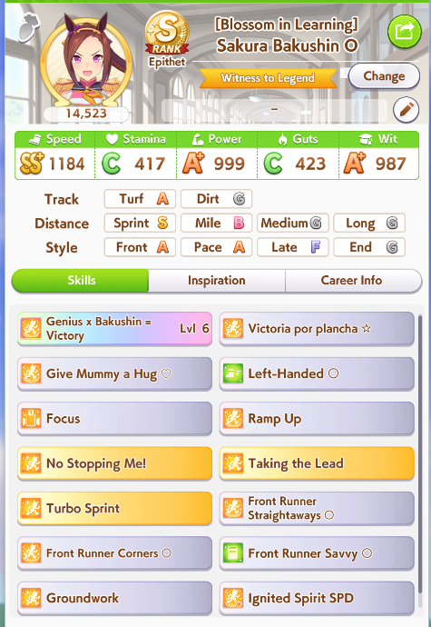 >>555553259I'm not sure about Brian's career but I'm still forcing OG Laisu for sprint. This is my latest attempt with her winning Tenno Sho