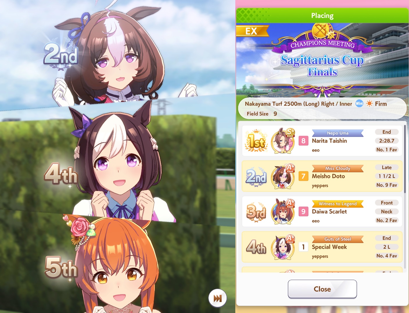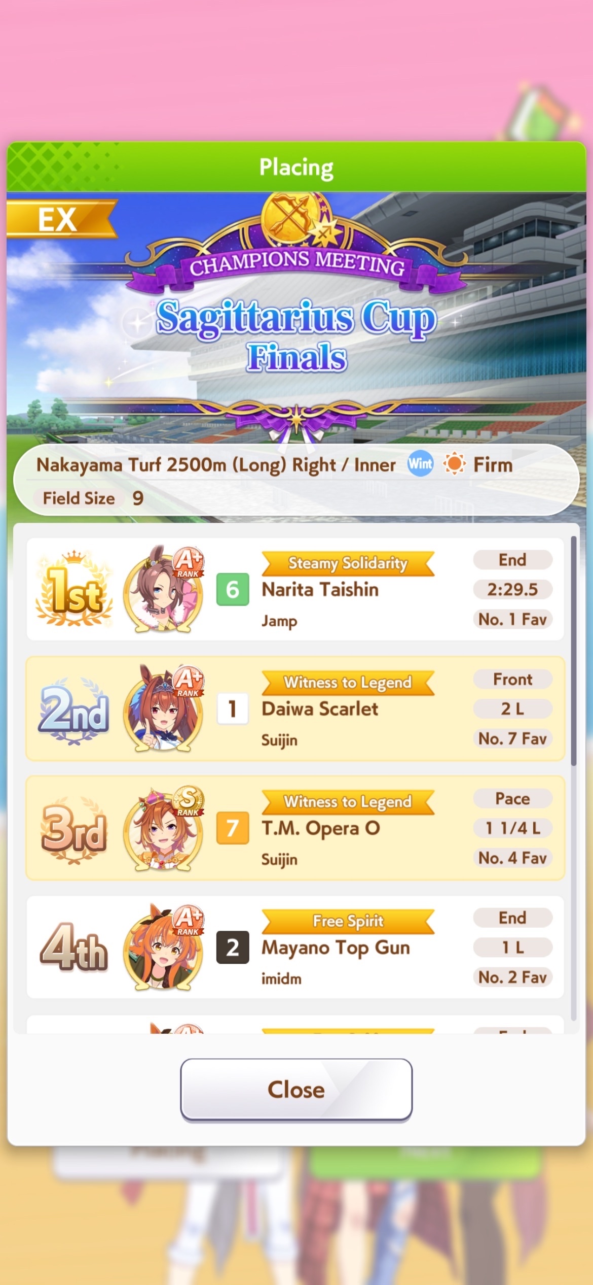 >>555552321Definitely not as strong as yours but had all the essentials to win, Long S really compensated for my non-maxed Speed