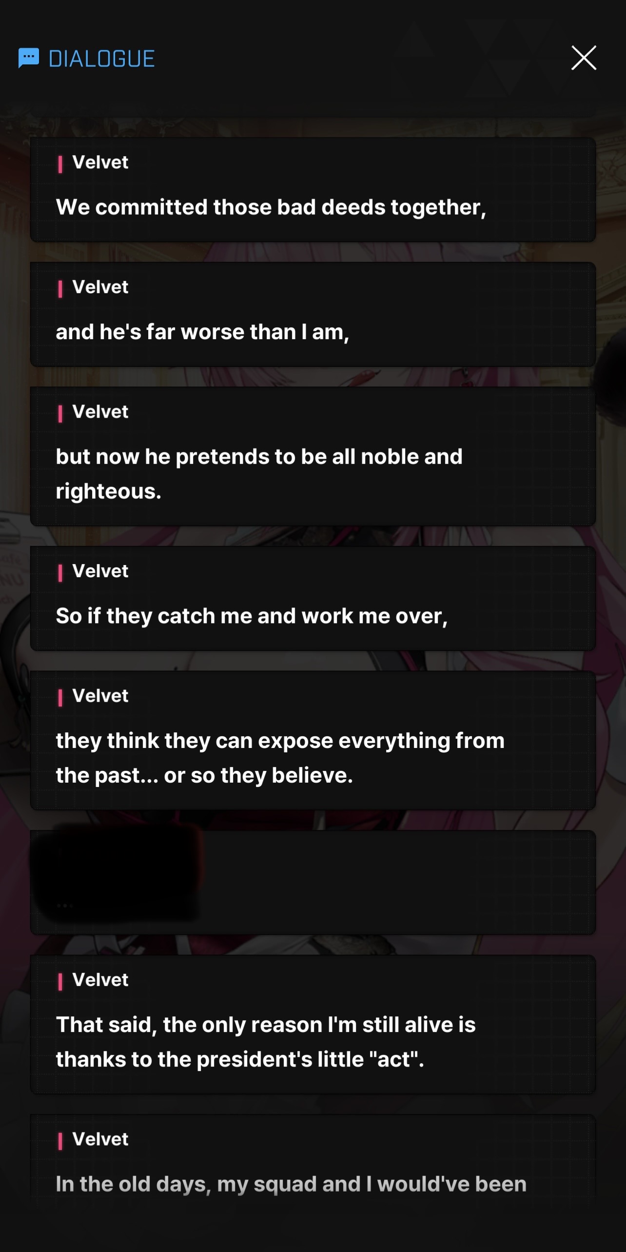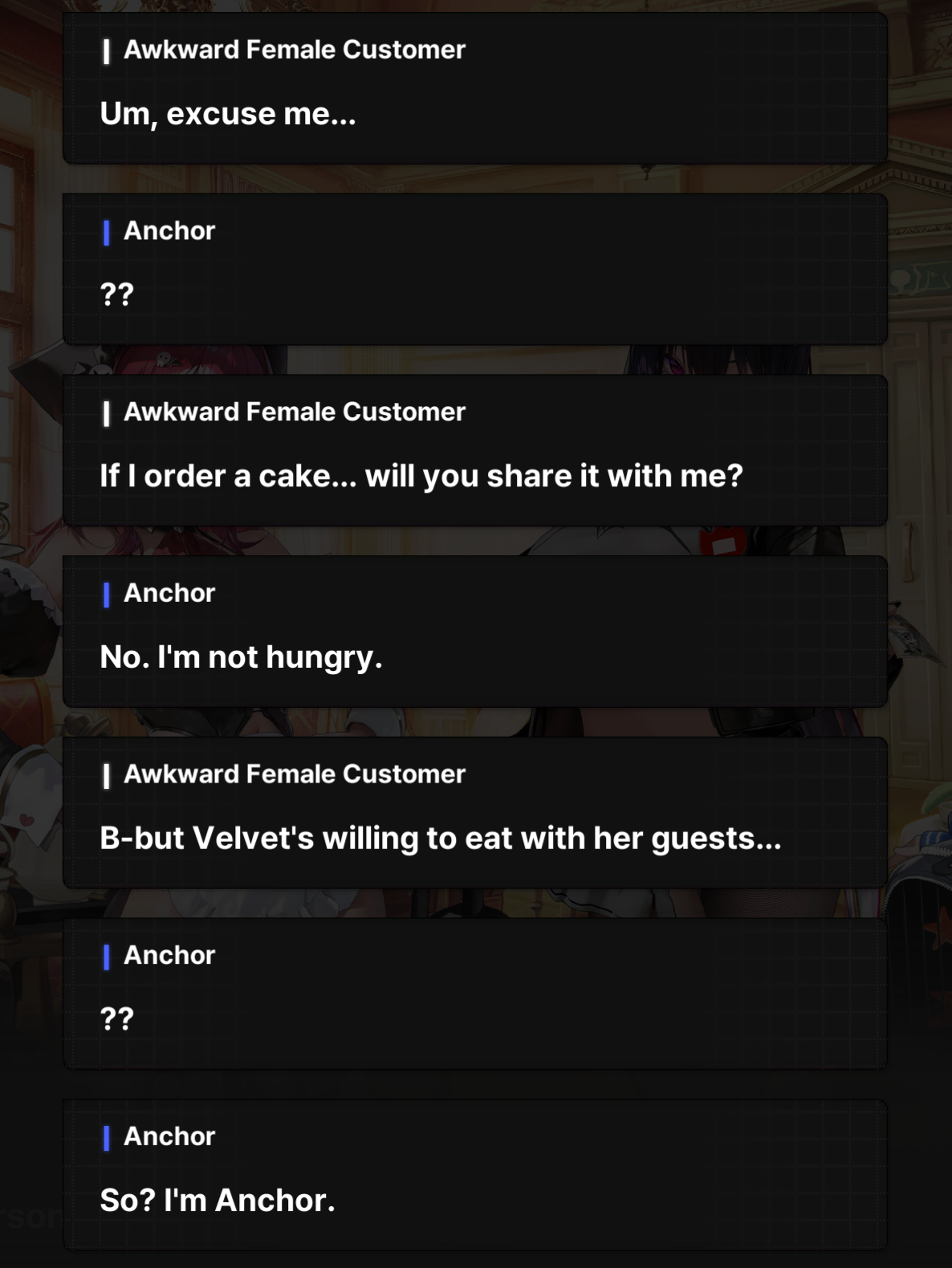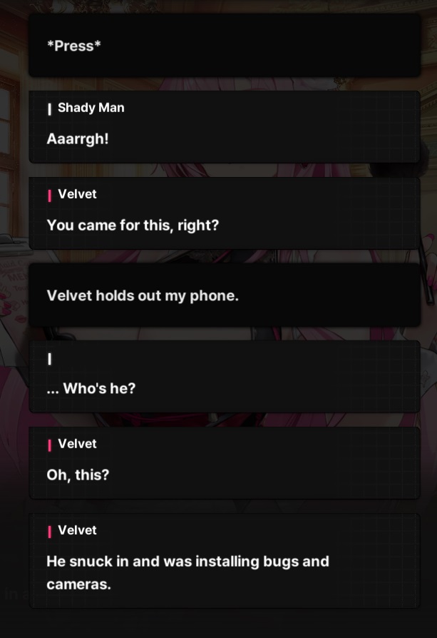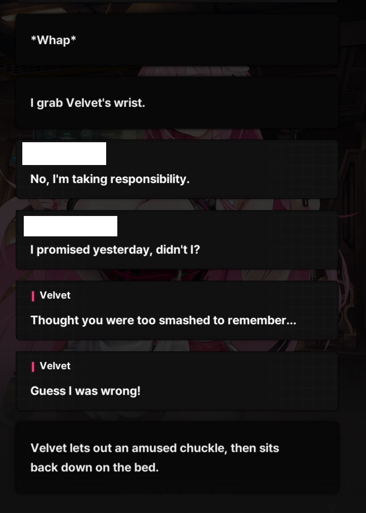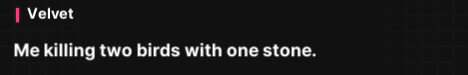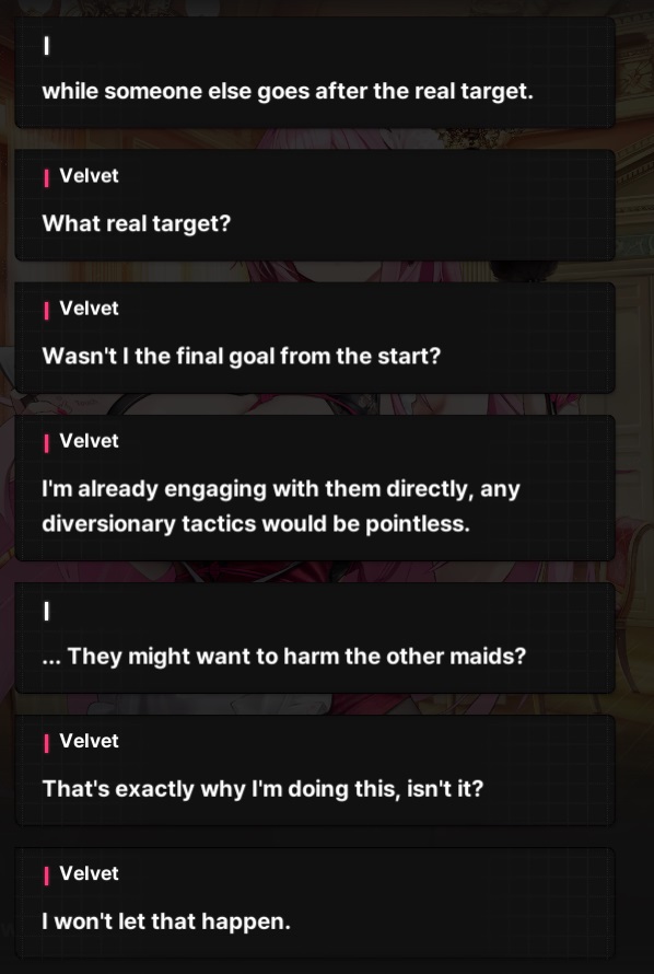 What I'm getting from this is Velvet's extremely weak to sincerity and doesn't know how to process people being honest? My favourite.