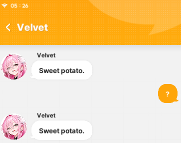 Fun fact: Velvet is officially the first chibi to have lip-syncing for her lines when she's talking. I just checked Label to verify and she doesn't have it.