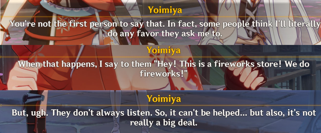 >>555560248Funny thing is that whole event ended up being a waste. The thing was meant to reveal Scara as the big bad behind Inazuma's troubles and set up a confrontation between him and Kazuha but of course then the retcon tree happened and everyone just forgot about it. Oh but it did mean we had to get a rehash of Kazuha's backstory 3 times, twice in one patch.