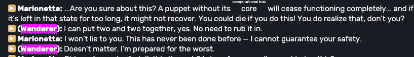 >>555559181I keep flip flopping between the world formula actually *doing* something or not.If its just a calculation then all we needed to do was have tabibito sit there while Bina tries to push through the Firmament which otherwise would be impossible without a descender.But I feel like it should've done *something* because the world formulas used in Font/Kheanriah seemed to have done something if Rene wanted to avoid total world death and I think Kheanriah calculated and summoned the twin from afar? So maybe it's something like that but they didnt really expand on it...