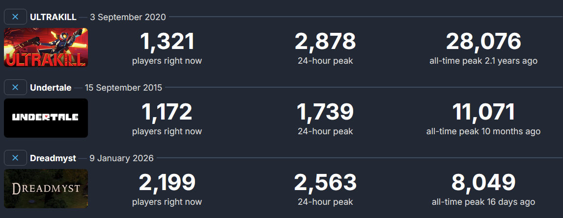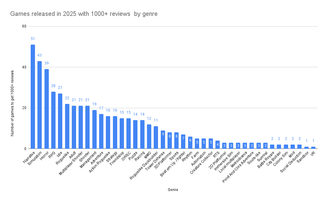 SLOP MARKET IS OPENNarrative games have taken the #1 spot.#2 Sim#3 Horrorhttps://howtomarketagame.com/2026/01/27/what-the-hell-happened-in-2025/Thank your local Zukowski chad human posters for sharing this information. Disregard all insectoid nodev seething about "ecelebs".