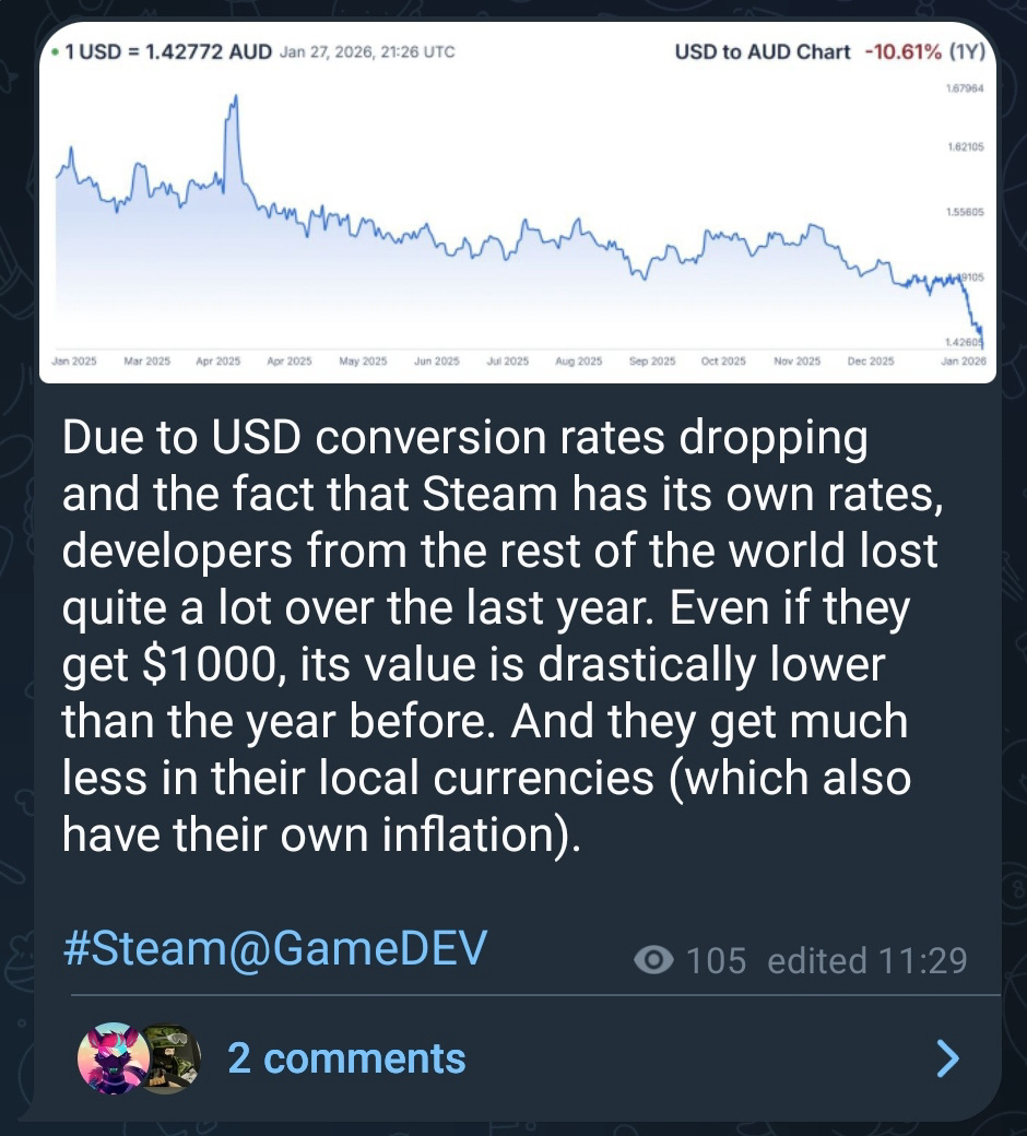 >>555560043But americunt devs are also losing money because of this though. Since gabencunt's conversion rates are out of date, turdines are basically paying less for games when converted for their currency.