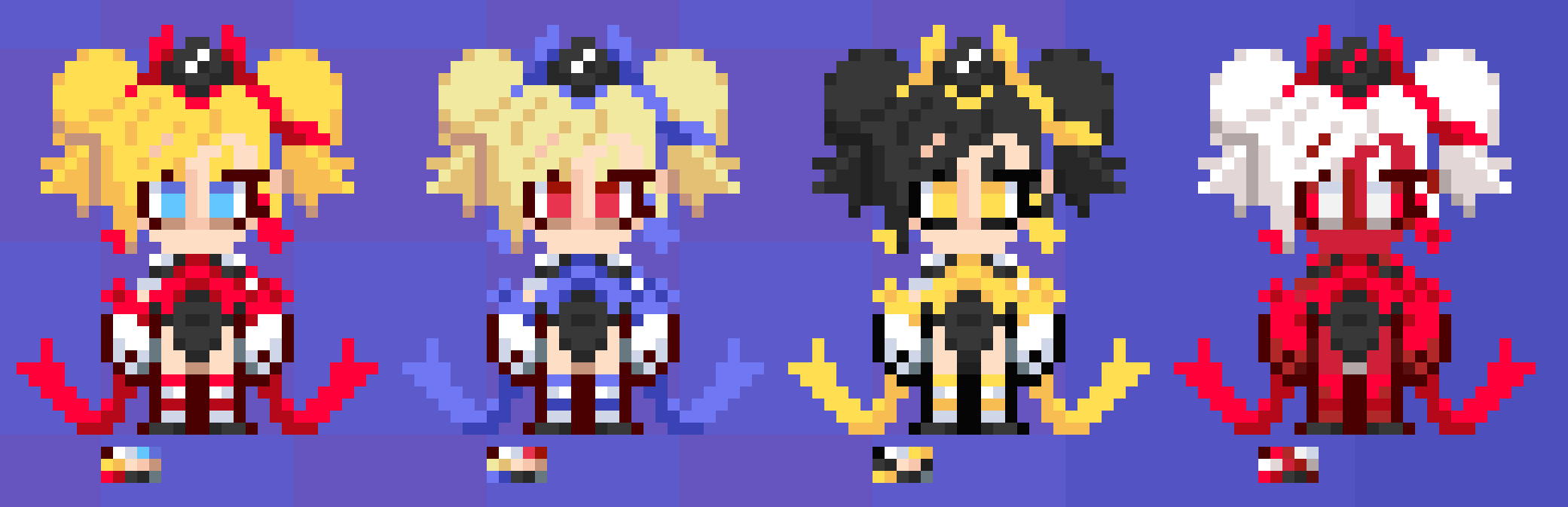 >>555572221The 15 color limit per sprite is fun to work. It's less to handle when drawing, but also does limit crazy palette swaps. It has it's ups and downs.