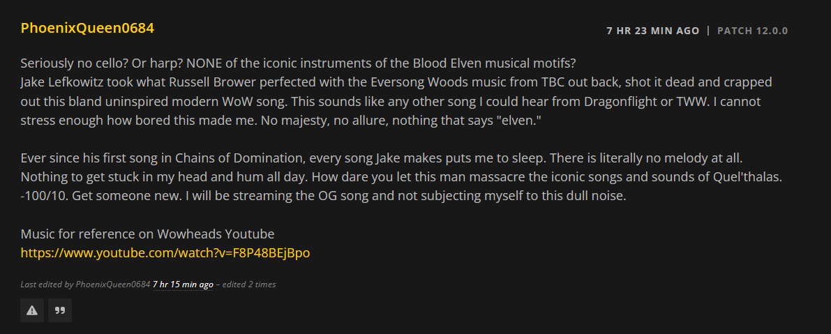 >>555558401here thinking Midnight music will be just at tww tier and they couldn't get that much better...BFA is second place now