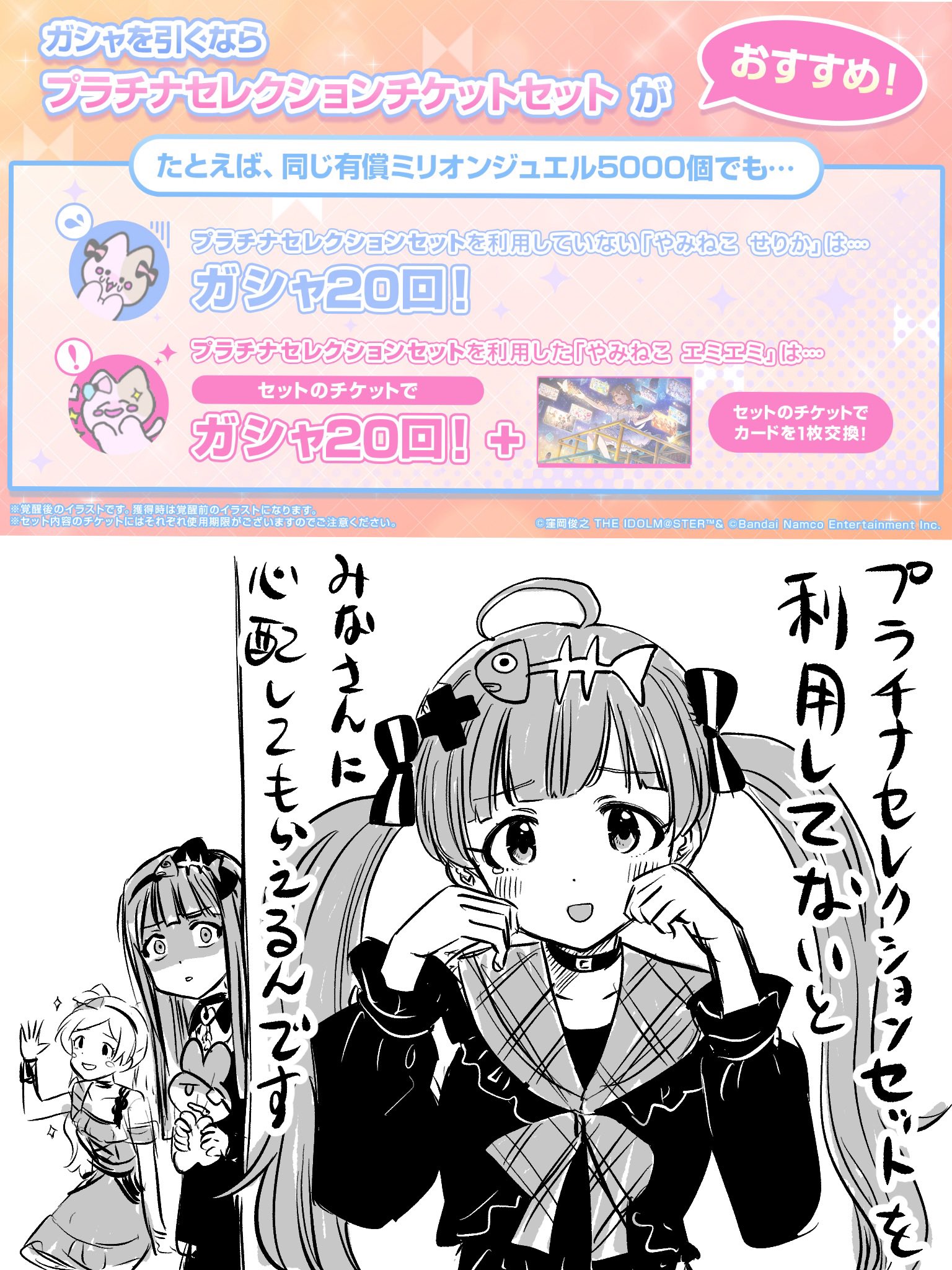 iDOLM@STER ThreadPrevious iM@S Thread: >>555519298Official website: idolmaster-official.jpJapanese news: imasnews765.comEnglish wiki: project-imas.wikiAPKs: apk.ksmz.moeOld archive of materials: sites.google.com/view/yukipobackupOld FAQ + Resource Links: pastebin.com/icRtaLvvMaterial translations + Music downloads: pastebin.com/DebHdukECharacter birthdays: pastebin.com/cLdezeDuNext thread OP: pastebin.com/A5UGxTuBHelpful Links: pastebin.com/Z70CGAsN>Event/Gacha Dates (Jan 27th): >>555338641 >>555338702- Previous News: >>555519323TODAY:Jan 29th, 12:30AM JST: LisAni!LIVE 2025 SUNDAY STAGE rebroadcast featuring Straylight: >>554693620Jan 29th, 8PM JST: Shiny Colors Habataki Radio Station #369: >>554534451Jan 29th, 10PM JST: Radio de iM@CHU!! "Puchimasu! Twelve Seasons! Vinyl Records" Special Edition: youtu.be/Gi8kUPVHwOI >>553195590 >>555215007Jan 29th to Feb 26th: Shiny Colors Winter collection on Kujibikido Online Lottery: >>554768092TOMORROW:Jan 30th, 8PM JST: Song for Prism PJ: REFRAC7IONS Σ Desire OurSTREAM: >>555451283Jan 30th, 9PM JST: VL Cosmo's 100K Subs Commemorative 3D Singing Live Stream: youtu.be/JIvNGhYlD3E >>550281405Jan 30th: Cinderella Girls x Weiss Schwarz Premium Booster featuring Fuckbunny Uzuki: >>541301221Jan 30th to Mar 30th: Shiny Colors ALSTROEMERIA x GOTOKEN Cafe Terrace: >>554399580Jan 30th to Mar 31st: SideM x Big Echo collab: >>550432487