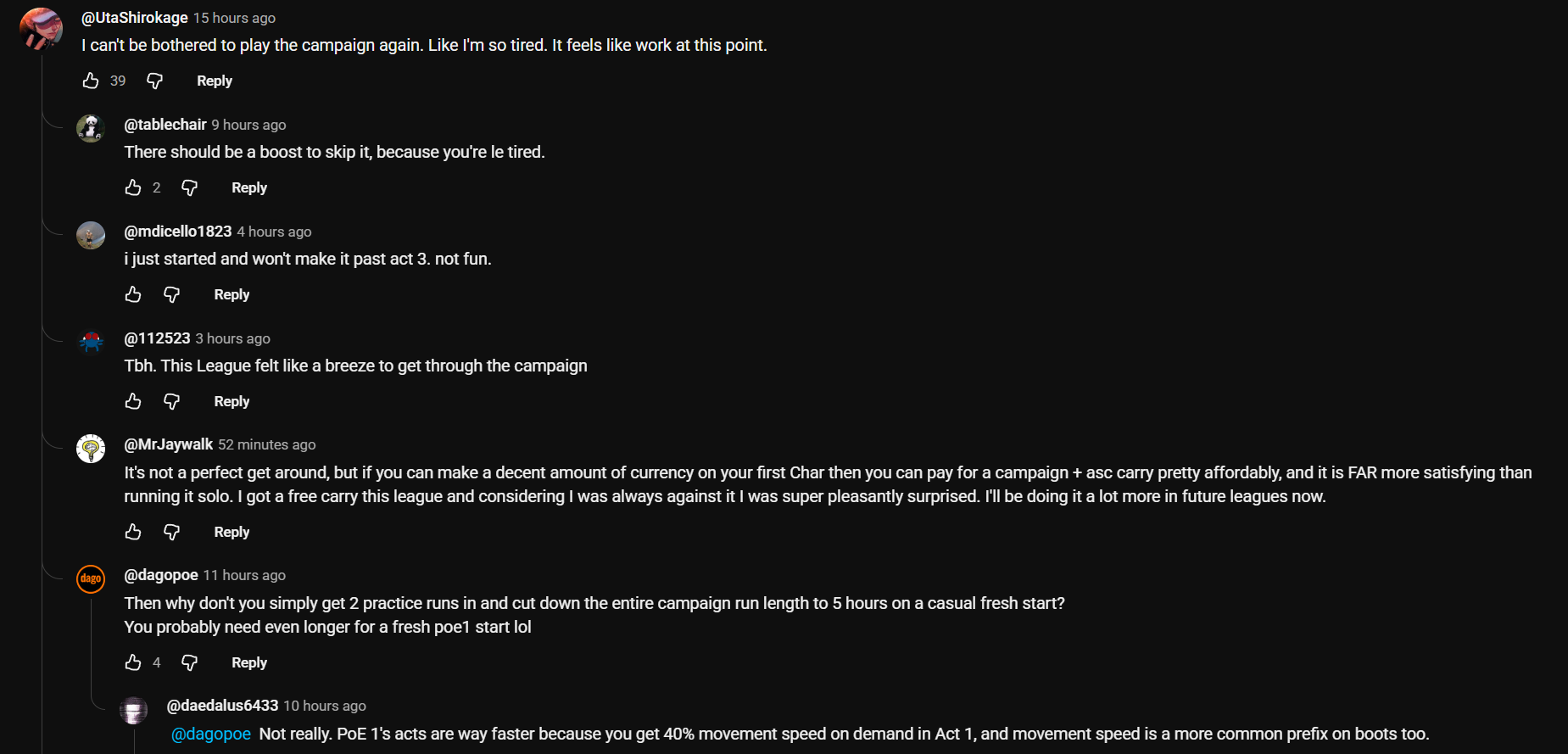>>555585139>criticif you are retarded perhapsif you cant do the campaign for each character then you dont really care about the game in the first place.we saw what campaign skip did in d4its even worse for player retention than the boosting we saw in d3normies think they do but they dont.