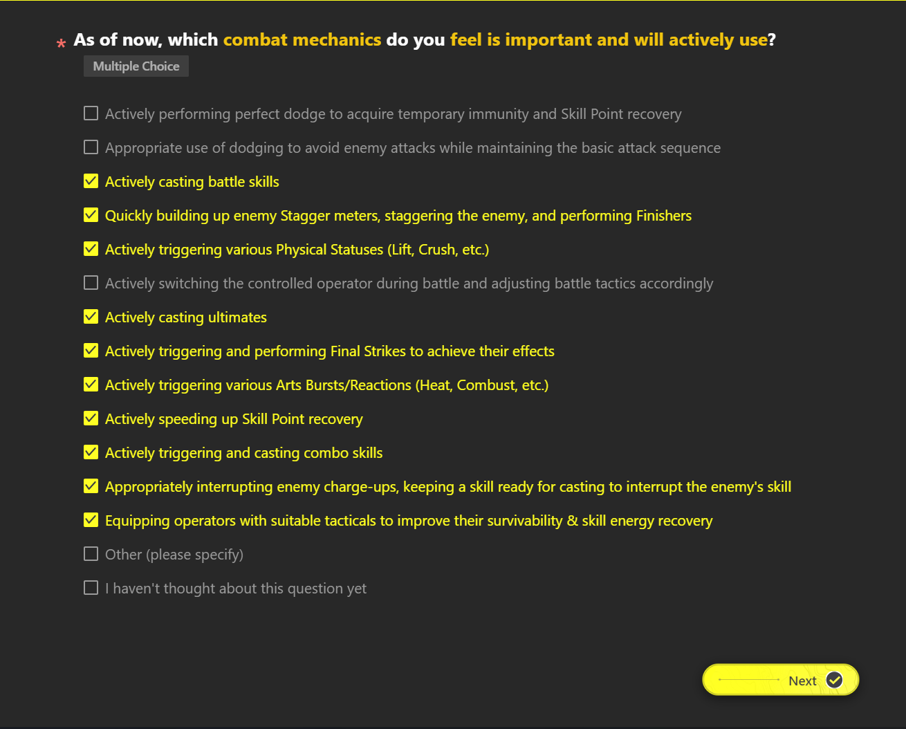 >>555612152In every survey I asked them to make enemies have less HP but hit harder, glass cannons are the most fun to fight against.