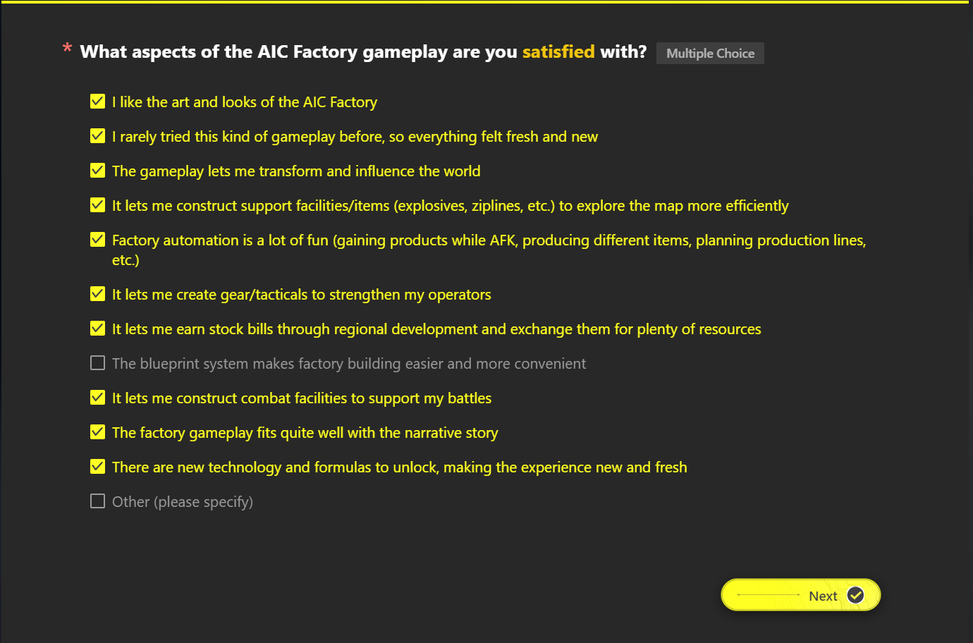 >Saintontas is on stream right now doing the survey, demanding the devs make the factory completely irrelevant>Wants the factory to not have any ties to endgame (no more needing it to craft gear), wants the factory completely dumbed down to the point where it's fully automated and you don't need to think about it at all or use it for literally anything>Wants the devs to make the entire game focused around endgame combat What are the odds the devs cave to this guy just like the ZZZ devs did when Saint and his CC ilk complained about TV mode? This guy is trying to ruin the game just like ZZZ.