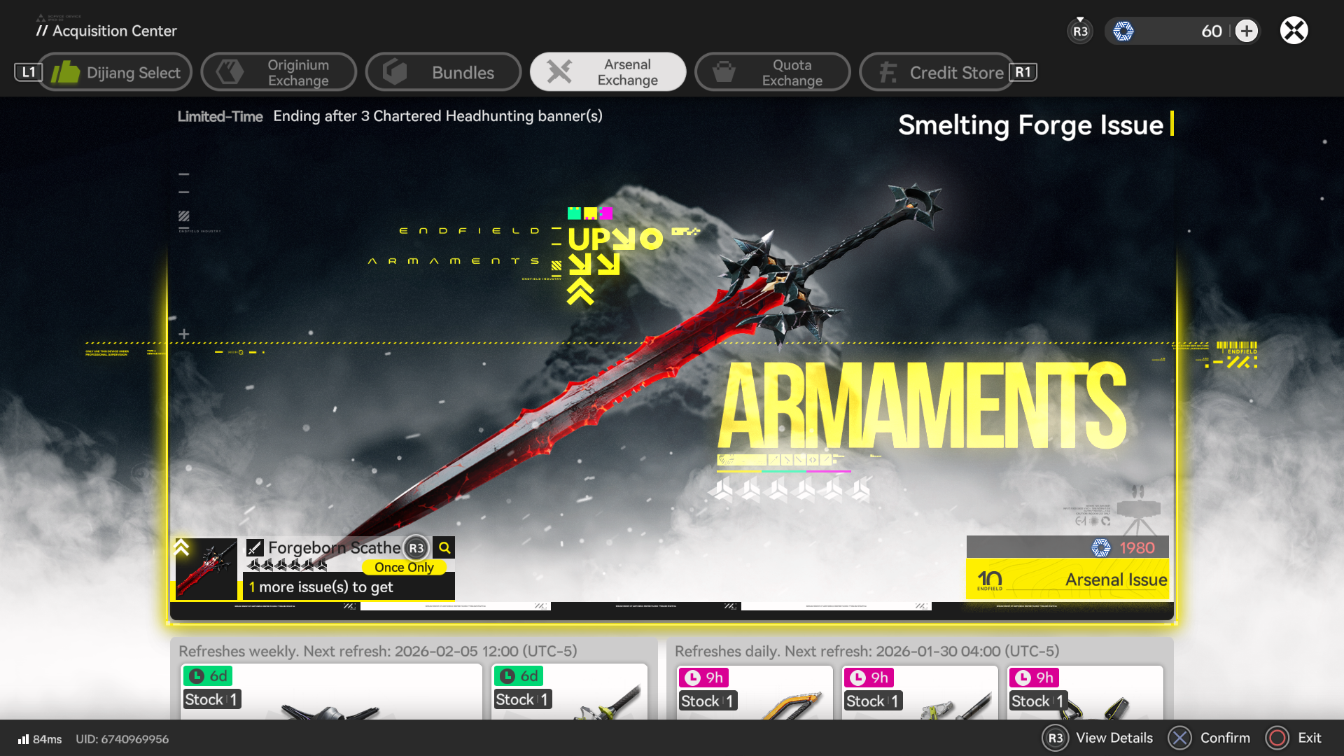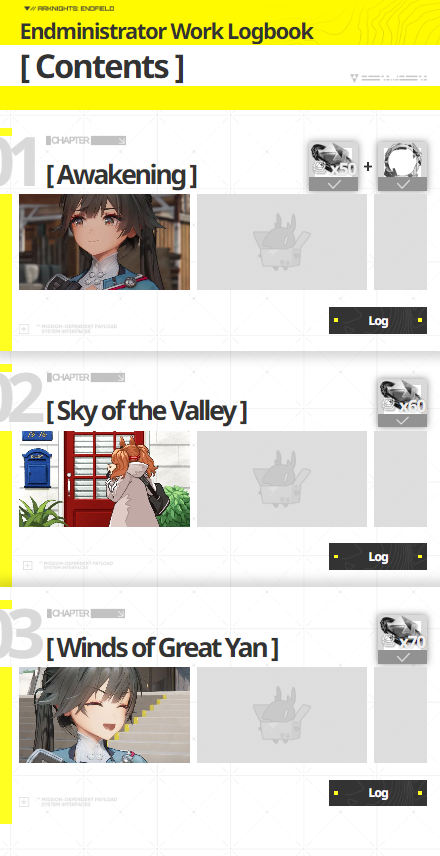 Previous thread: >>555612731>Official Websitehttps://endfield.gryphline.com/en-us>Official EN X (NEWS HERE)https://x.com/AKEndfield>Chartered Headhunting ScheduleJanuary 21st to February 7th --- "Scars of the Forge", (Laevatain)February 7th to February 24th --- "The Floaty Messenger", (Gilberta)February 24th to March 13th --- "Hues of Passion", (Yvonne)>Launch Reward Codes (Valid until January 29th)RETURNOFALLALLFIELDENDFIELDGIFTENDFIELD4PC>Twitch Dropshttps://endfield.gryphline.com/special/third-party-binding?channel=twitch>Voyage to the Stars (Ongoing until March 4th)https://endfield.gryphline.com/activity/voyage-to-the-stars/en-us/>Special Launch Streamhttps://www.youtube.com/watch?v=dz2g_D52NR0 >Official Release Trailerhttps://www.youtube.com/watch?v=oJ00ggFb8A0 >Official Release PV'shttps://www.youtube.com/watch?v=5Xm45NwWOlohttps://www.youtube.com/watch?v=UPpeeft1-8o https://www.youtube.com/watch?v=tN80M6IEMo0 >Wikishttps://wiki.skport.com/endfield (Official)https://perlica.moehttps://warfarin.wiki/enhttps://endfield.wiki.gg/>Blueprint Guideshttps://talospioneers.com/en>Stickershttps://drive.google.com/drive/folders/13KH3L6QPIKkVH7pBddv4uxwmwJsnOtklhttps://drive.google.com/drive/folders/1OuVtjv1k-9c3M6n7d4PX3CGG5bkwH04ahttps://drive.google.com/drive/folders/1AStB8bzFk3lSwMwczWPkFYCBrZe0vHOghttps://drive.google.com/drive/folders/1yS0lqUhxf8tBRtpDFfCU1y16IS2sSeF7>Fr/end/sSubmit your info, /end/min:https://forms.gle/Fo7BhZMKaKqiWyL19View other /end/mins:https://docs.google.com/spreadsheets/d/1YtxiDss0hgEQhLlZgpfzyGrJrzUcqDzOS9T6IH-BiVc/edit?usp=sharing