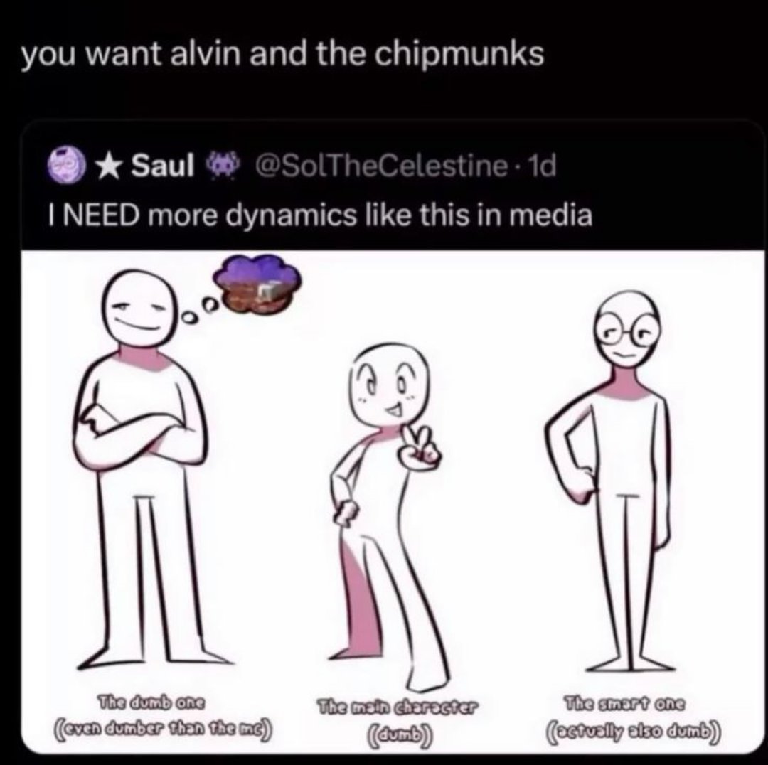 >>555641630chained to the bed scenario is a good one, I'll save this one>>555642567I don't see why, that's a perfectly common and functional trio dynamicunless you're taking the image as the characters being literally dumb