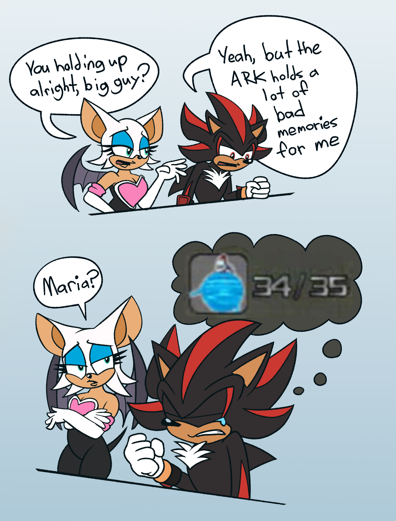 >FlynnI love the idea of Sonic getting married, having kids and settling down after compromising for his lover>EvanI would pair everyone. Sonic, Tikal, Rouge, and Shadow as a poly ship>OshimaSonic has a boy's heart, but if he didn't, I think he would choose Emi>IizukaQuote: *Laughs*>NakaMention the concept of Sonic in a relationship around me again and I will fucking gut you