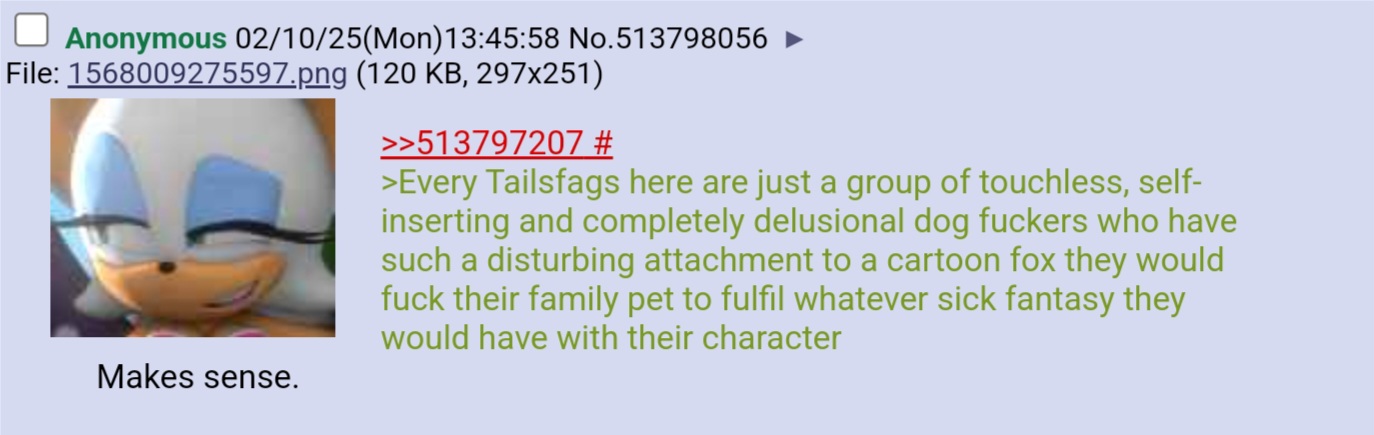 >>555666994I don't think romance in Sonic is bad either. Too many anons here hate romance