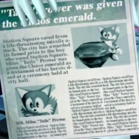 >Tails: Everything's working great! All systems go... Full speed ahead! [The plane starts to shake] Uh oh! What's this? [The engine starts to sputter and give out, soon belching black smoke as it sounds like it is diving towards the ground] Nooooooooo! [The plane starts to fly around awkwardly] Aaaaggg...! I'm outta control! Mayday! Mayday! Goin' down! [The plane goes through Station Square] Aaaaggg...! Look out below! [The plane is heard crashing behind the hotel on Emerald Coast]-ACK>Yeah, it's just that I'm testing a new prototype power supply and it's not fully compatible yet!-ACK>Hey, we can't let him get away! Let's get to my workshop and we'll take the Tornado!-ACK>Alls well that ends well-ACK>How did you know that was a fake chaos emerald-ACK>Eggman you bite-ACK