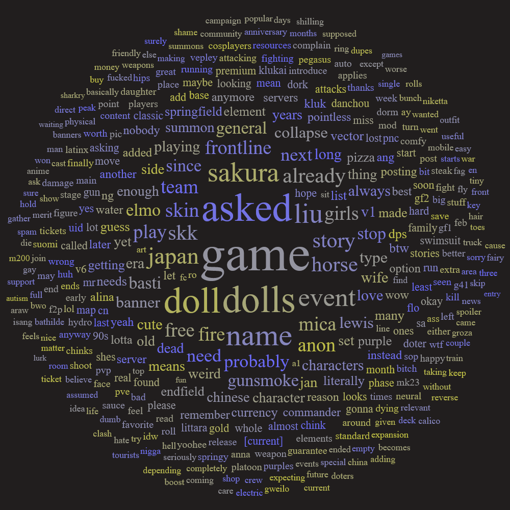 Previous:>>555483921This is a thread for MICA/Sunborn games. Including Girls' Frontline 1 and 2, Neural Cloud and Reverse Collapse: Code Name Bakery.Bind your account to a Sunborn ID instead of logging in from Facebook/Google.>STORY SUMMARYhttps://docs.google.com/document/d/1IalPz5JPc8-we4MiOsYhrMrOINifxW9d9Q6mTAqGoq8>TRANSLATED STORY & LORE MATERIALhttps://drive.google.com/drive/u/0/folders/14bAuWaGbagJwucmlit3EkXFqMRV9NHZO>GUIDESGF1 Resources: https://rentry.org/o9ibbk2kGF2 Resources: https://rentry.co/5x2kxhs4PNC Resources: https://rentry.org/dd5q8b25RC: https://store.steampowered.com/app/1127700/Reverse_Collapse_Code_Name_Bakery/>NEWS/EVENTS (GF1 EN)[Current] Jan. 13 - Feb. 2 | Special Event: Roche Limit[Current] Jan. 13 - Feb. 9 | New Re-Supply Gacha: Crisis Dispatch Center[Upcoming] TBA | Event rerun: The Summer Garden of Farking Paths >NEWS/EVENTS (GF2 EN)[Current] Jan. 29 - Feb. 18 | Targeted Procurement: Sakura[Current] Jan. 29 - Feb. 18 | Character Event: Sakura - Advanced! Miss Courier!>NEWS/EVENTS (PNC EN)[Current] Mar. 25 - ? | Nothing>Old Events & OP Templatehttps://rentry.org/gfgroot>DO NOT REDEEMGFL2ANNI (D) (H)URAB1GD0RC (D) (H)Reminder to bully seaniggers, doroniggers, discord trannies, bugmen, /v/ermins, dramaniggers, tourists, yuritroons, retards & degenerates, and to lurk 2 months before posting