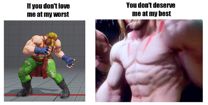 There ain't a woman alive that would look at this handsome, good looking black man shining with all wealth and seriously pick broke ass bum ass circus clown Alex over him. Money, looks, dick size... there is nothing that Balrog is lacking, every male in the series is a easy mog for the champ.