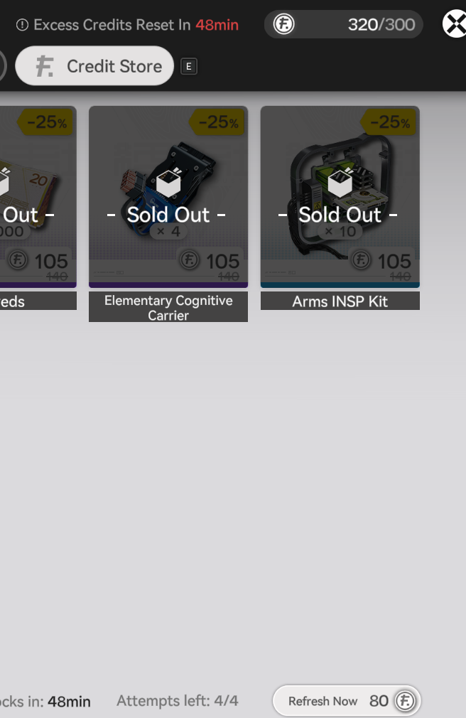 >>555669968I get so many credits per day from fr/end/s that i usually do one reset. no need to hoard credits