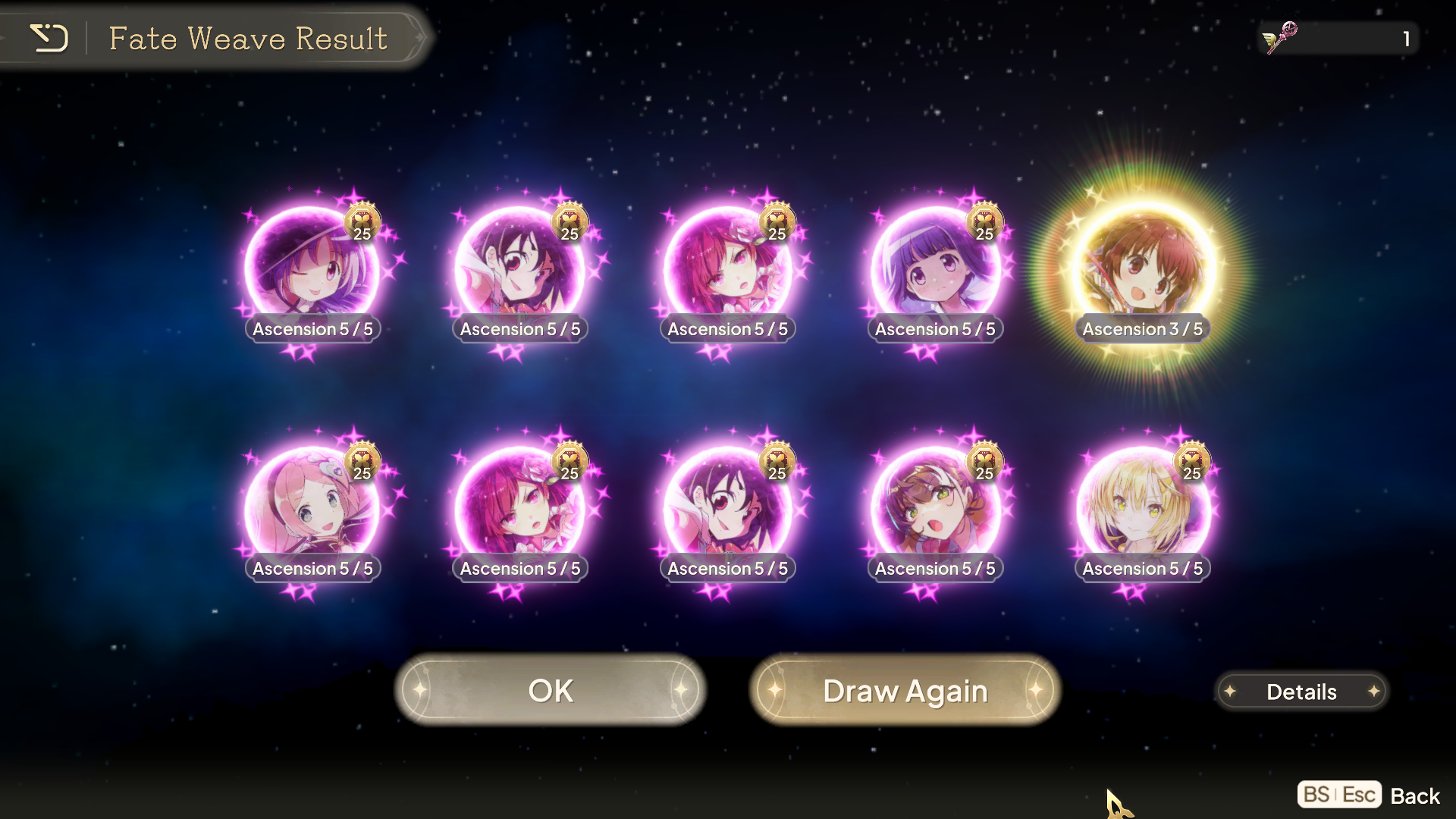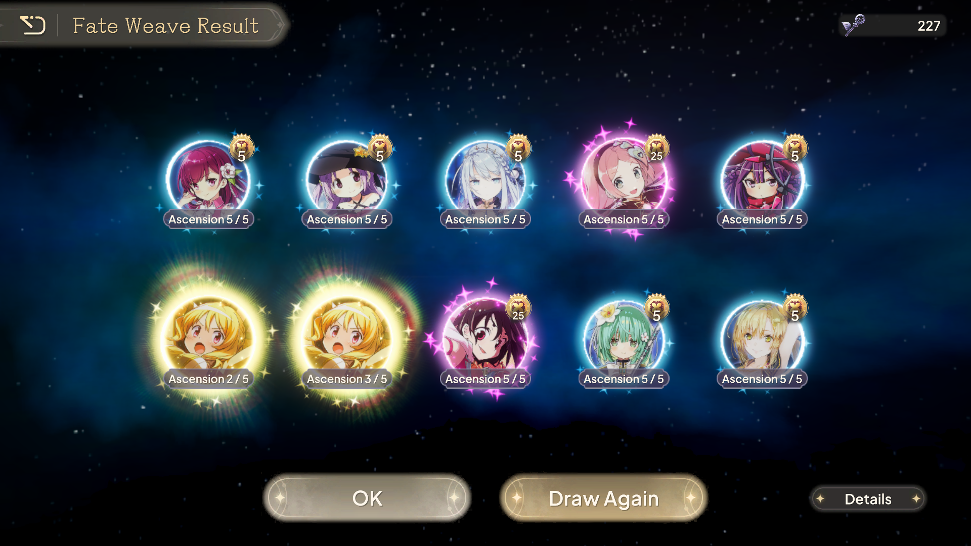 Madokami was good to me and gave me her on the second step up... Unfortunately got no ascensions in the next 110 rolls, and dunno if I'll have enough rolls to spark for A1.>snaa 3/5>homu 4/5>doppel iroha 4/5After not getting any homuras since I started playing, I got her A3 yesterday and A4 today. Wonder if she's better for the raid than A4 Yachiyo now...
