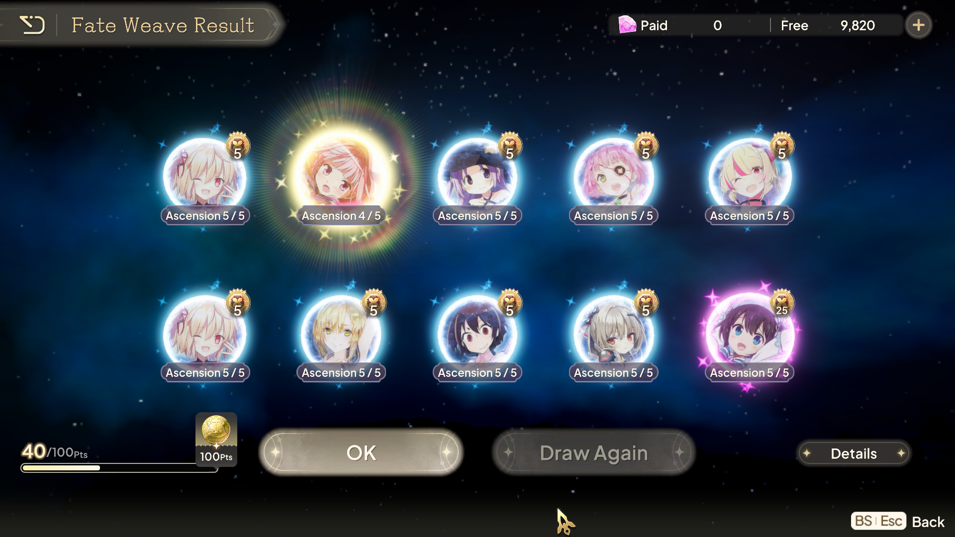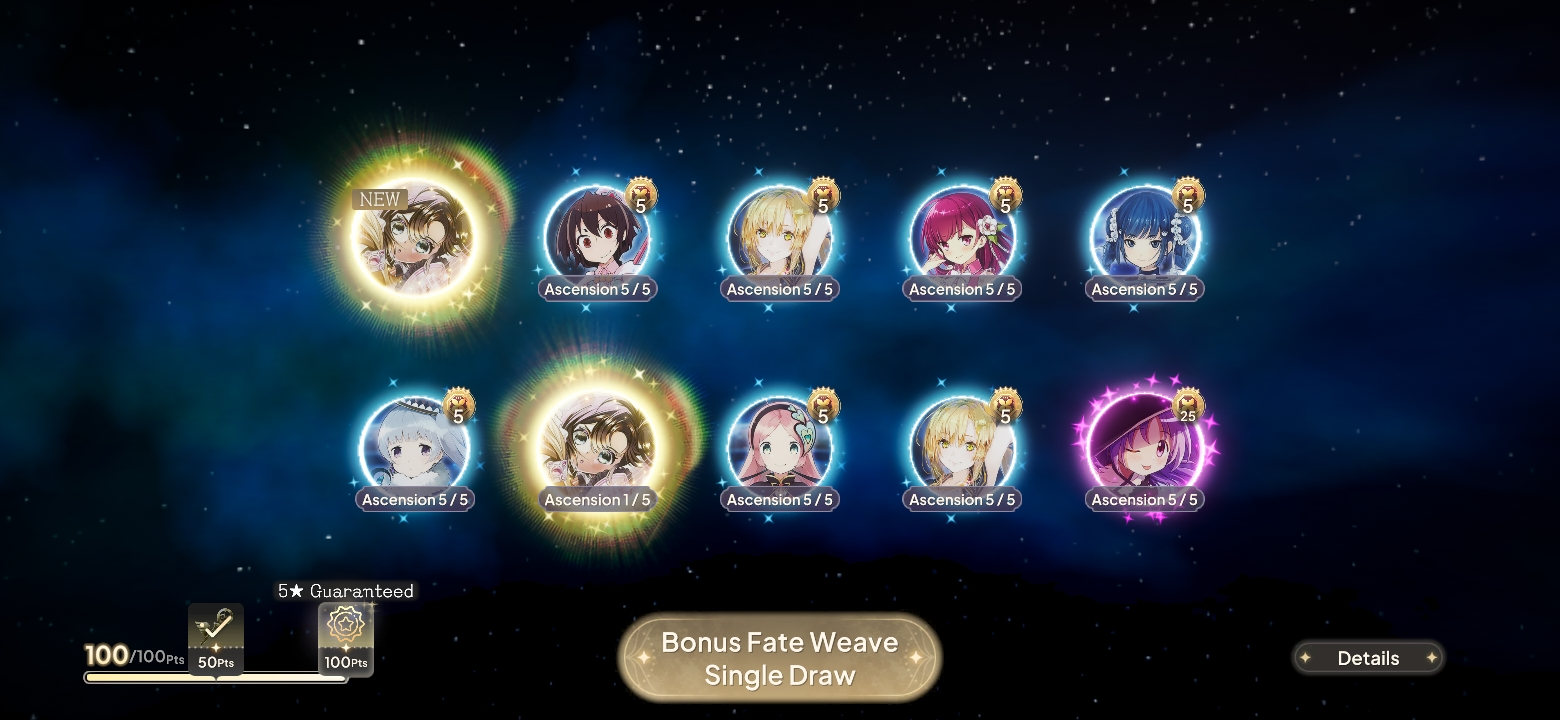 >30k gems>1st Sakurako>A7 Oriko>A3 og Mabbers>bonus 5* pull>A6 HomuraAbsolute dogshit pulls, my worst session by far. I won't risk wasting any more of my gems so I'm saving until who knows when.Also fuck the bonus single 5* pull, it's a fucking scam and I shall avoid it entirely from now on.