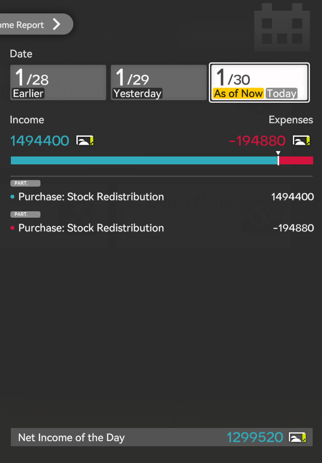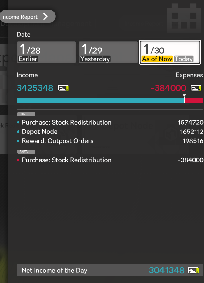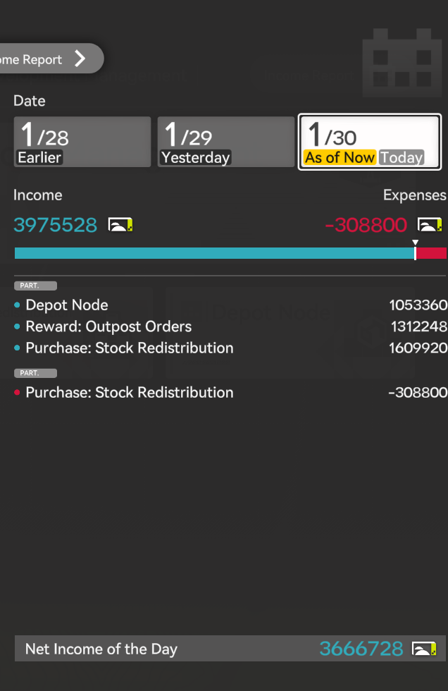 Where do I find my income/stats for all the materials I'm making.I dunno if I've even unlocked that yet the next story mission is to go back to the spaceship